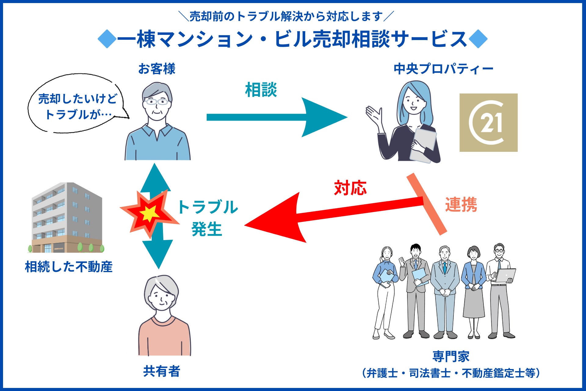 一棟マンションや一棟ビルを相続した方に、この「一棟マンション・一棟ビルの売却相談サービス」が問題解決に少しでもお役に立てたらと考えております。