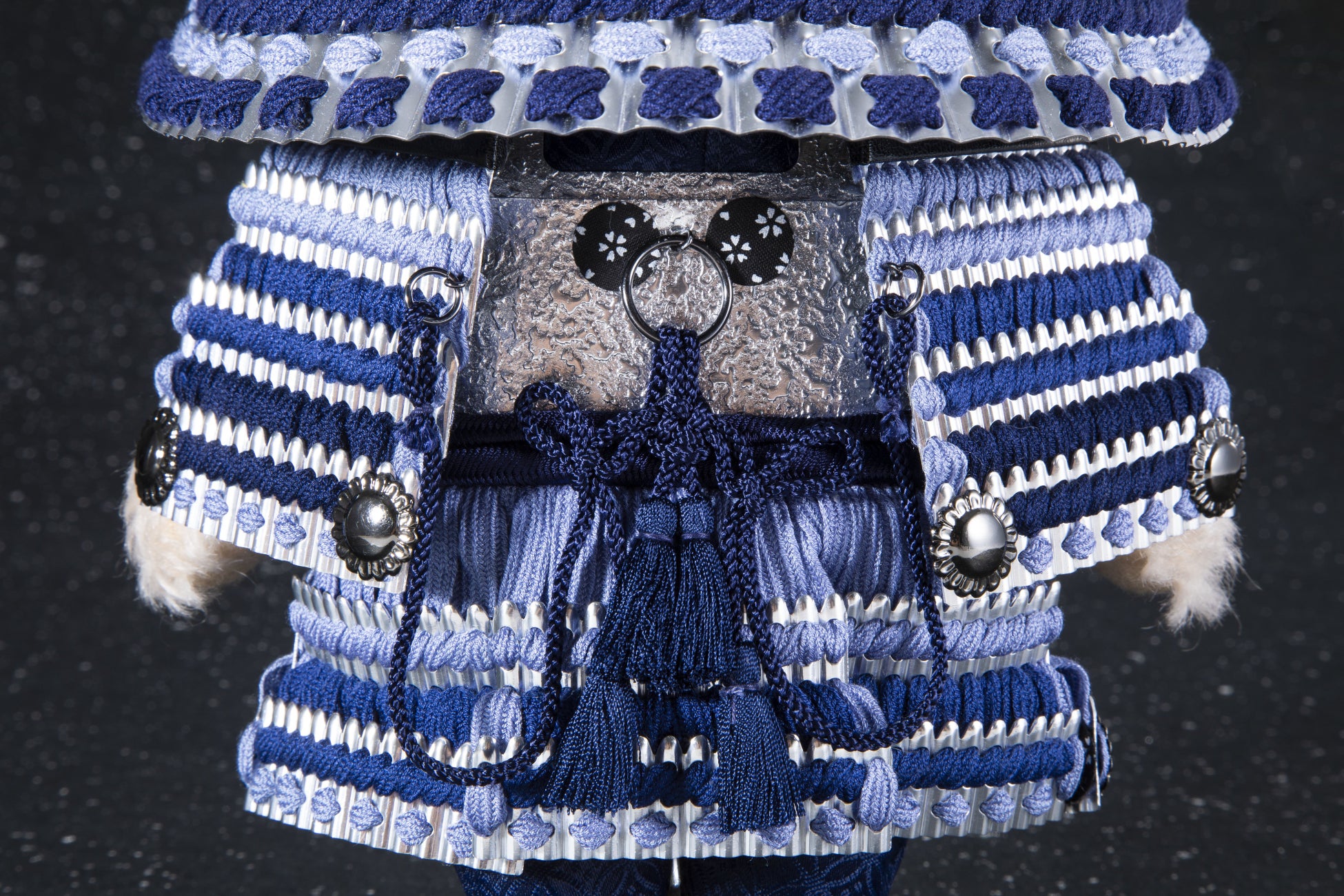 江戸幕府を開き、戦国時代を終結させ、天下統一を成し遂げた徳川家康。家康の兜の特徴とも言える、歯朶(しだ)の葉の前立(まえたて)が高級感とインパクトを与える「テディベア サムライ 葵(あおい)」。