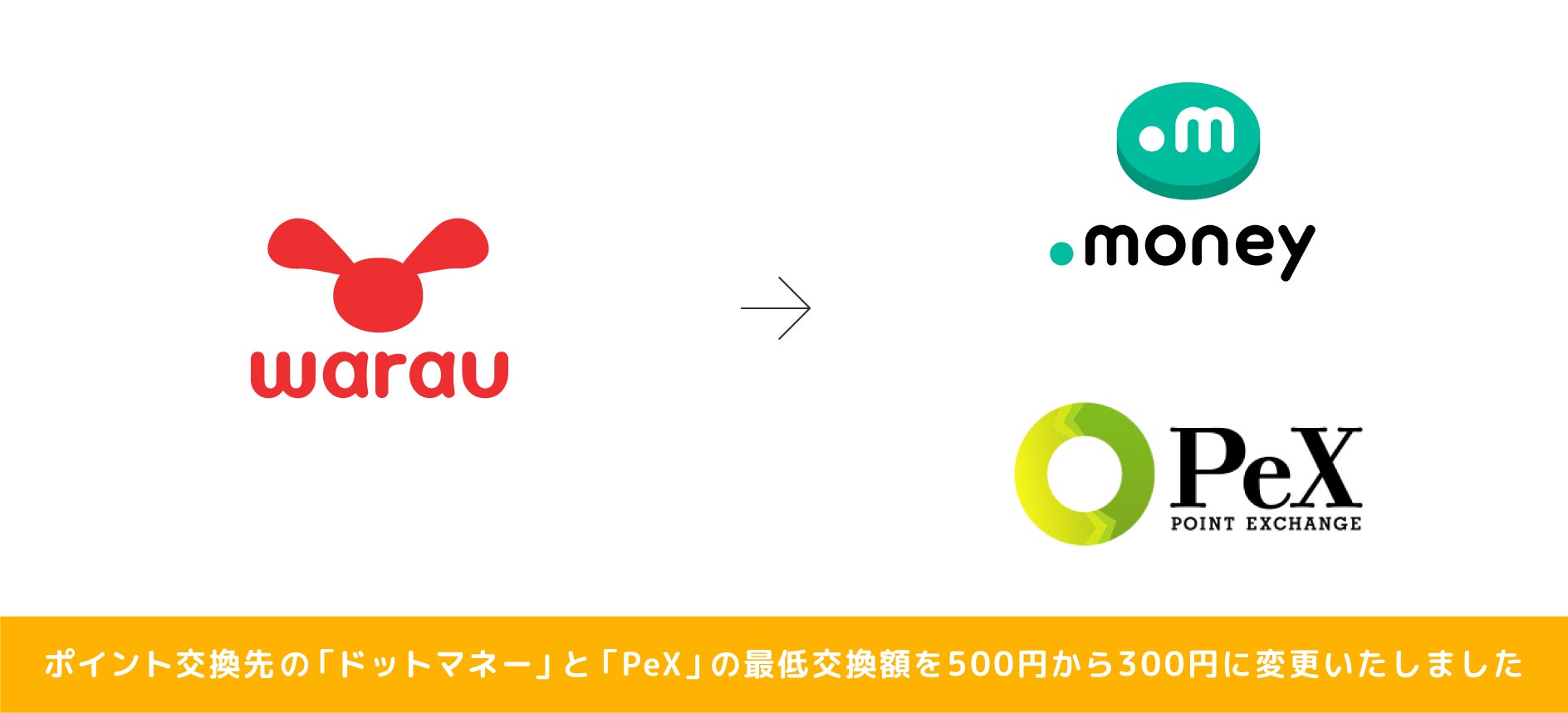 ポイントサイト「ワラウ」がポイント交換先のドットマネーとPeXの最低交換額を300円に変更
