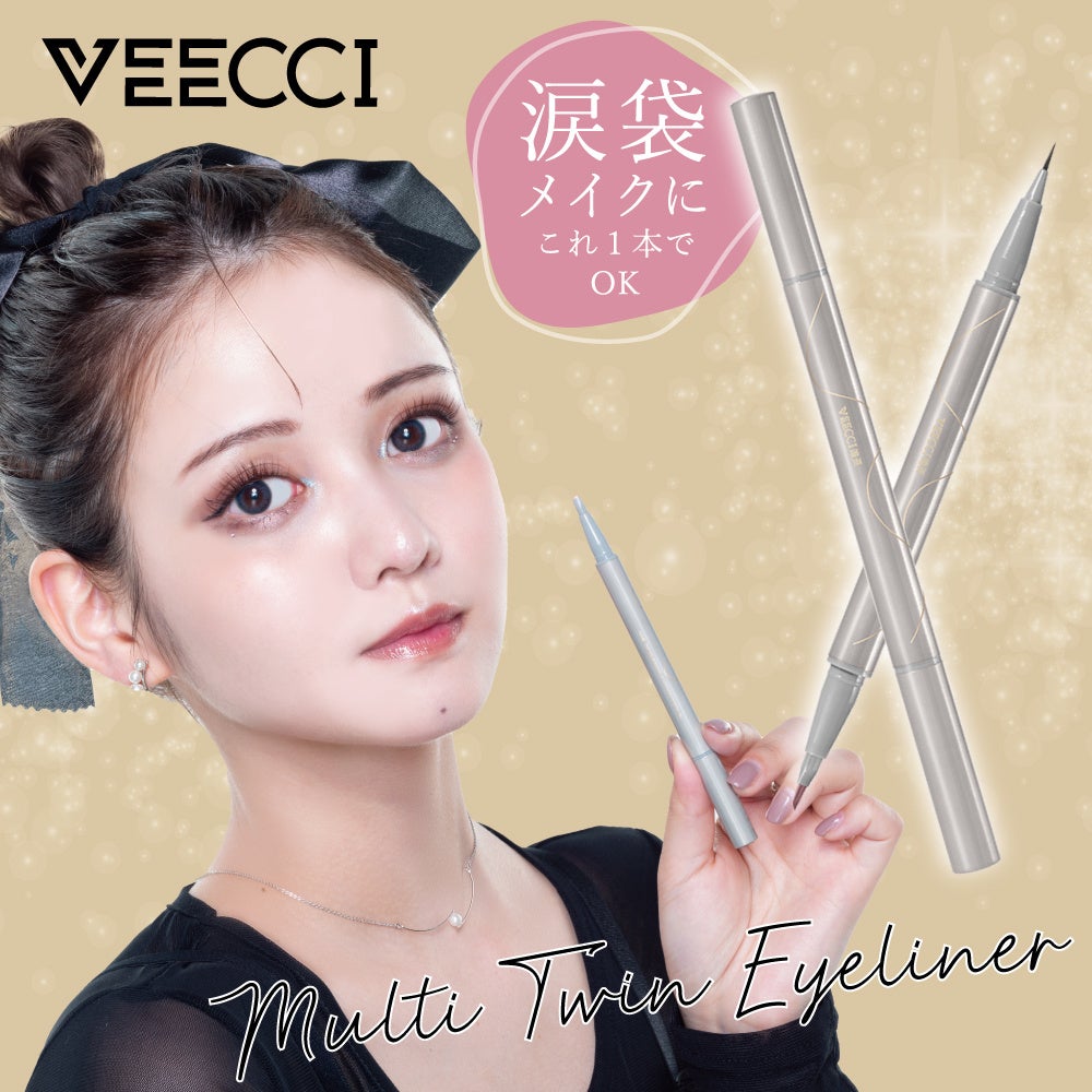 『VEECCI マルチツインアイライナー』は、極細リキッドと涙袋用アイライナーが1本になった下まぶたメイク用リキッドアイライナー。極細筆で涙袋の影や下まつ毛が描きやすいお役立ち商品。これひとつで下まぶたのメイクが完成!アイメイクをもっと自由に、もっと好きな自分に。