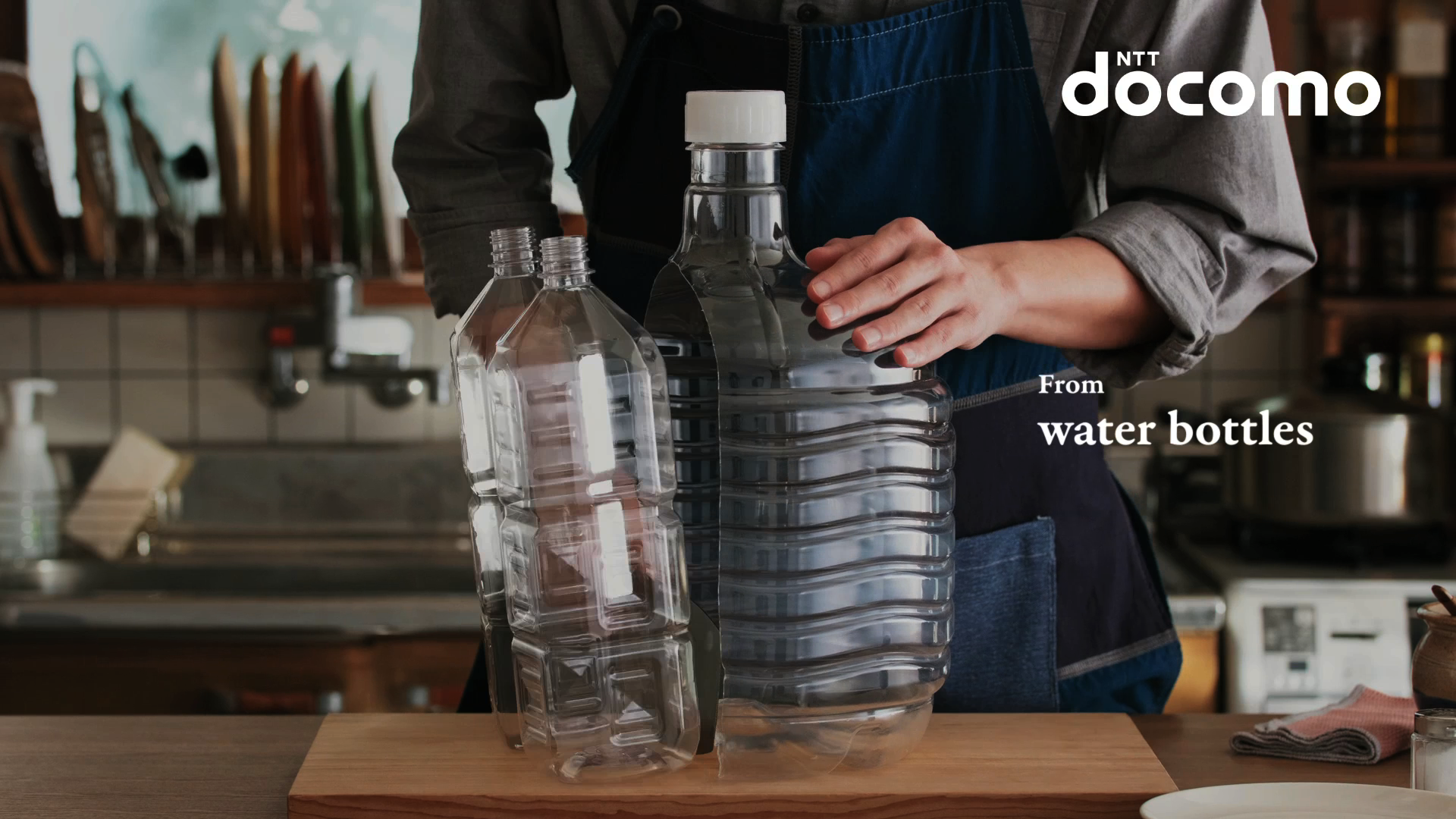 コンセプトムービー「docomo ethical kitchen」では、「arrows N F-51C」の最大の個性である、リサイクル素材を約67%*使用し環境に配慮した「エシカルスマートフォン」であるという特長を料理に置き換えて表現。静止画を1枚1枚撮影し、それらを組み合わせて動画にするストップモーション手法を取り入れ、空のペットボトルなど、利用済みの資源が料理の工程を通じてスマートフォンに生まれ変わる様子をユニークに描写しました。動画に使われた静止画は全部で約1270枚。80時間にもおよんだ撮影の舞台裏を収めたメイキングムービーも公開します。