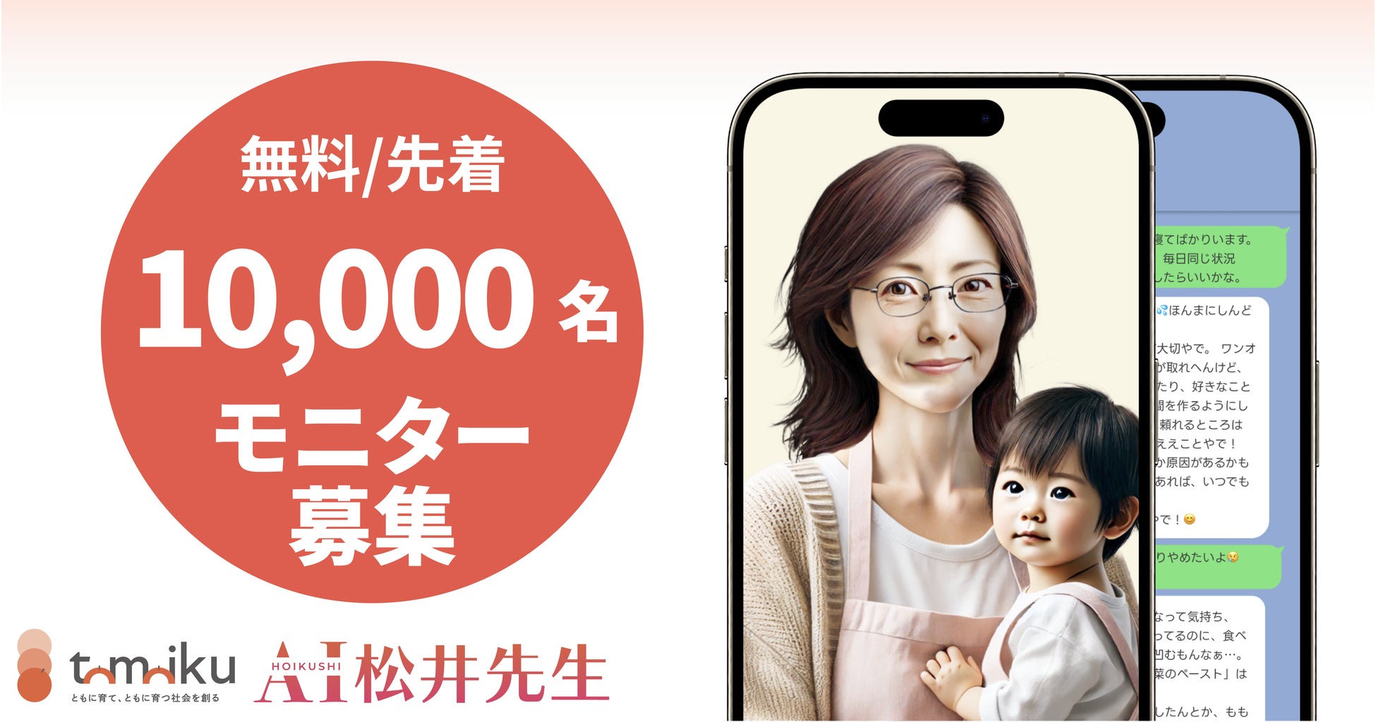 ■無料モニターを募集します先着10,000名様を対象に、AI保育士松井先生を無料でご利用いただけるモニターを募集します。