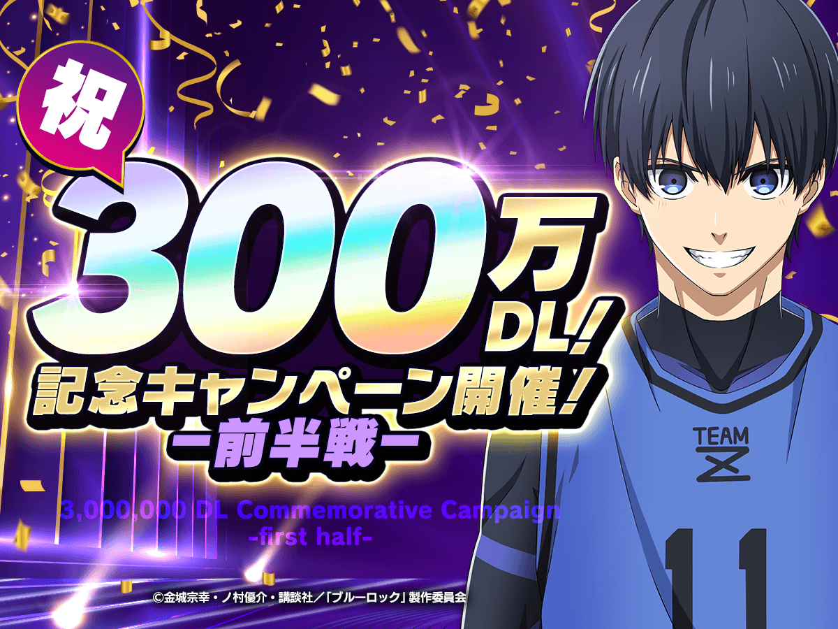 株式会社ルーデル(本社:東京都新宿区、代表取締役:渡邉 真)は、現在好評放送中のTVアニメ『ブルーロック』を原作とするスマホゲーム『ブルーロック Project: World Champion』アプリのダウンロード数が累計300万を突破したことをお知らせ致します。