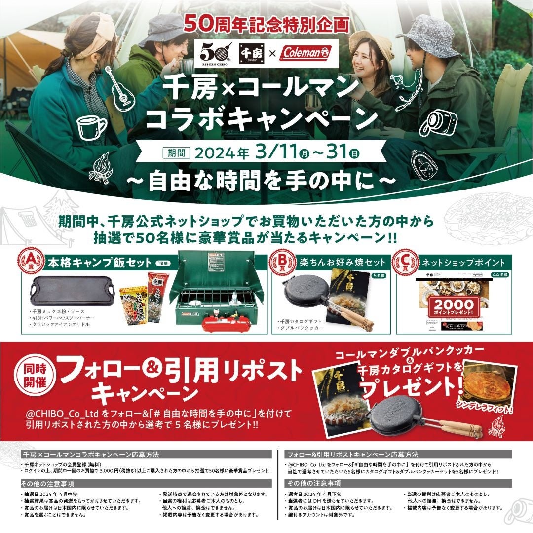 3/11~3/31 千房50周年記念企画 千房 × コールマン コラボキャンペーン開催