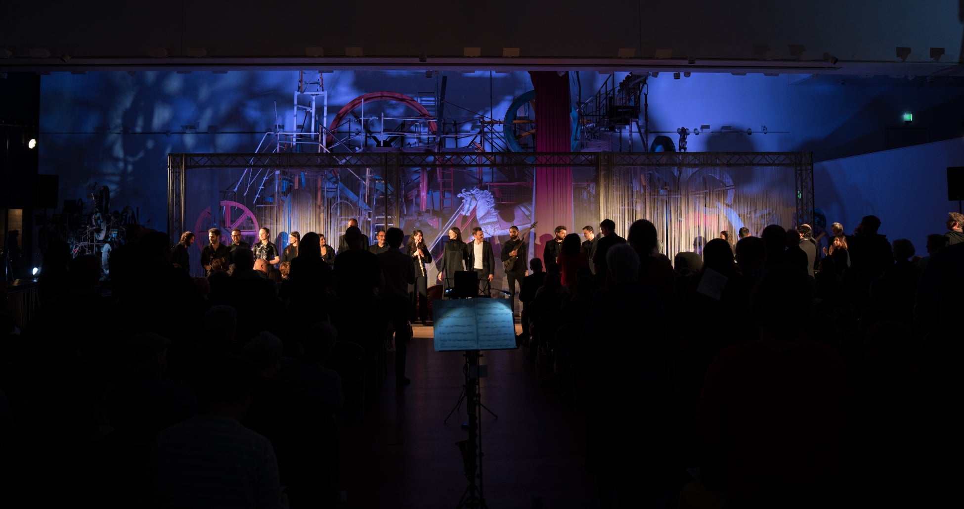 量子コンピューティングの基礎を分かりやすく紹介する「ティンゲリー・エンタングル」は、量子物理学の中心的概念である「重ね合わせ」「エンタングルメント」「コヒーレンス」「トンネリング」を感覚的に音楽とビジュアルを用いて紹介するサイエンス×アートパフォーマンスです。5人の物理学者が舞台や映像上でストーリーを語り、ライブミュージックとビジュアル・アートがその内容を補足します。鑑賞者は、サウンドとビジュアル・アート、舞台とエレクトロニック・ミュージックをミックスしたユニークな体験に身を委ねることができます。アートを窓口に、難解で理解不可能にも思える量子物理学の世界をこの機会にぜひご体験ください。