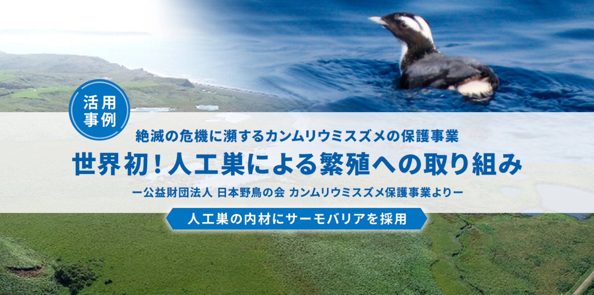 株式会社ライフテック(本社:岐阜県各務原市、以下「当社」)は、公益財団法人日本野鳥の会(本部:東京都、以下「日本野鳥の会」)が実施する絶滅危惧種カンムリウミスズメの保護活動において、当社の遮熱材「サーモバリア」が人工巣の内材として採用され、人工巣での繁殖成功に貢献したことをお知らせいたします。