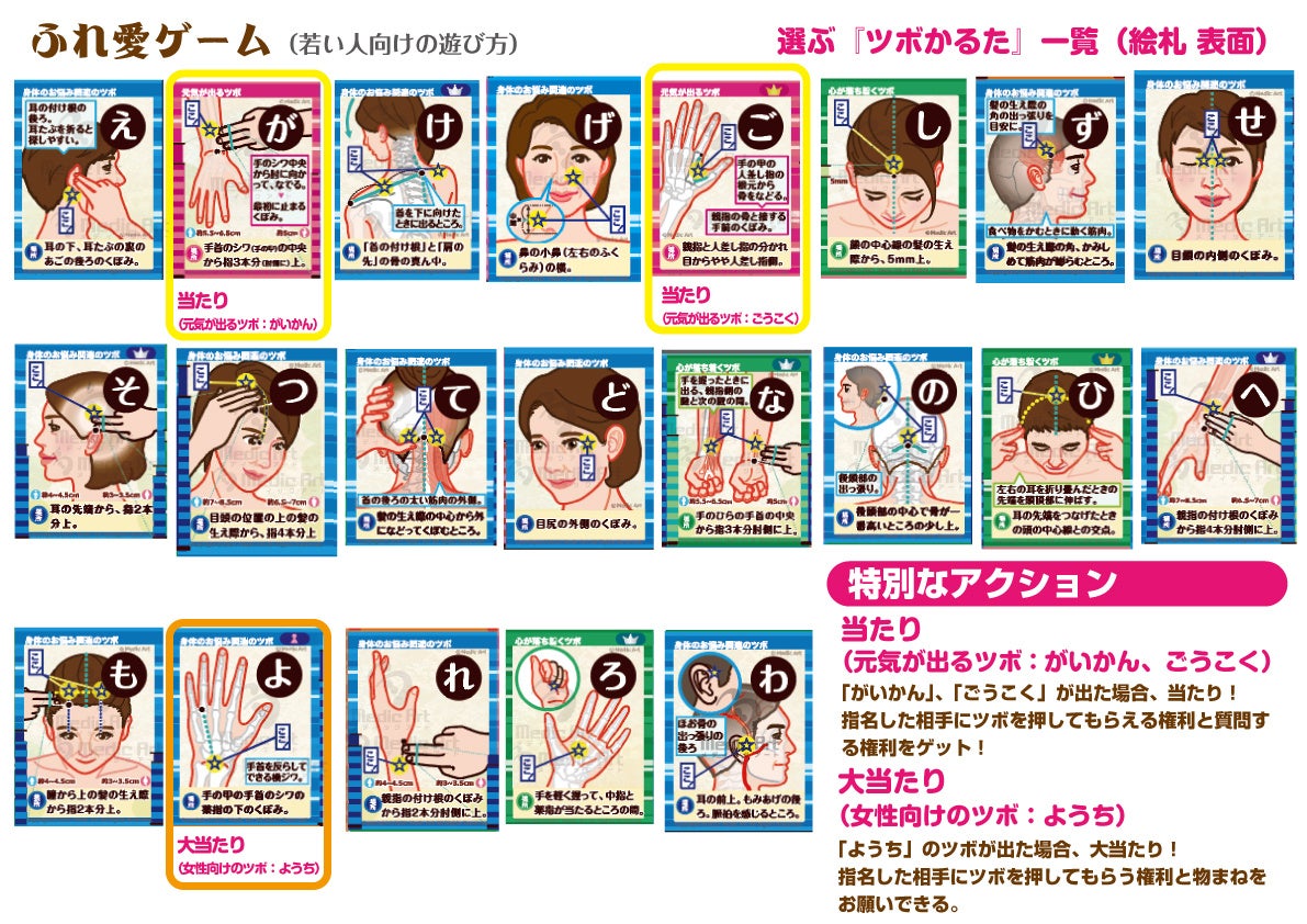 ~ツボ押しが若者の間で流行中!? 友達との距離が縮まる新感覚コミュニケーションゲームが誕生! 『おうちで健康 ひとりツボかるた』に若者向け「ふれ愛ゲーム」の遊び方を追加~