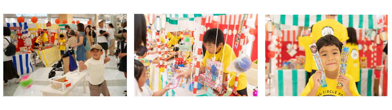 子どもたちが縁日の店長になって接客やサービス提供を行います。困りごとを周りと協力し自ら解決する力を養います。大人が用意した体験をするのではなく、子ども自身が主体的に行動する環境を提供します。こども縁日は、射的やヨーヨー釣り、千本くじなどを10種類以上の出店を予定しています。