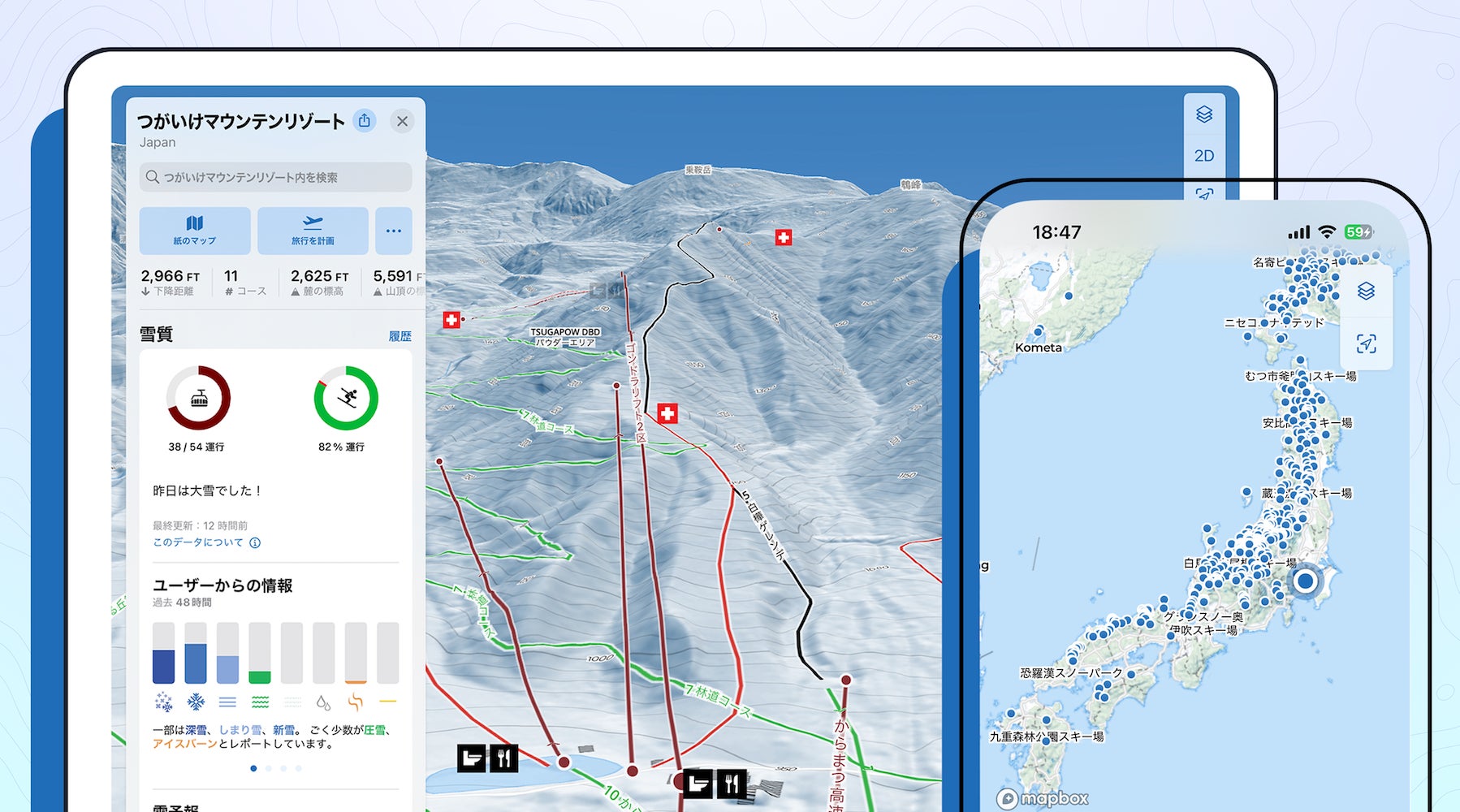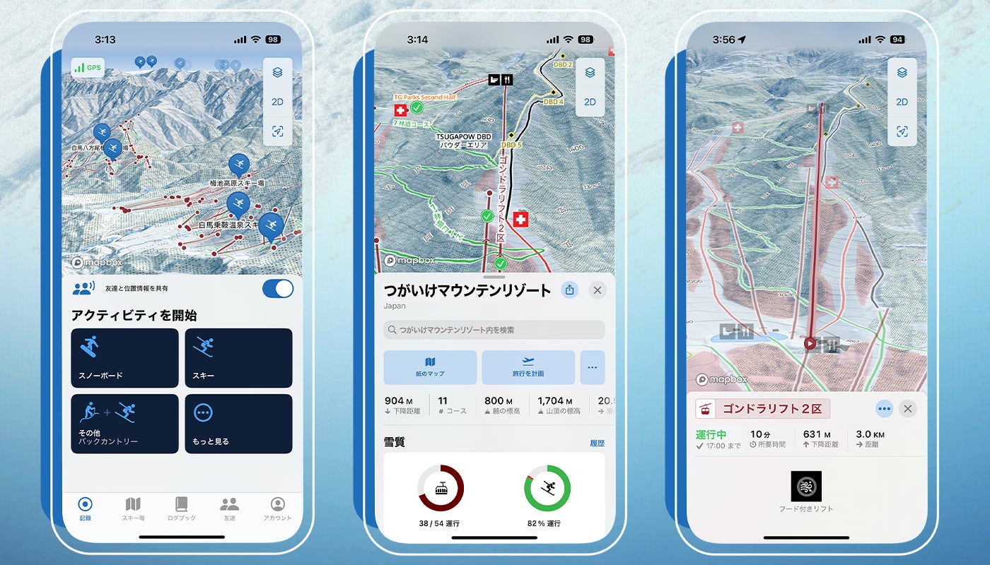 また、2024年より公式パートナーとなった「つがいけマウンテンリゾート」のデジタルマップには、リフトの運営状況やコースの整備状況が確認できる機能がいち早く実装されました。