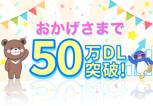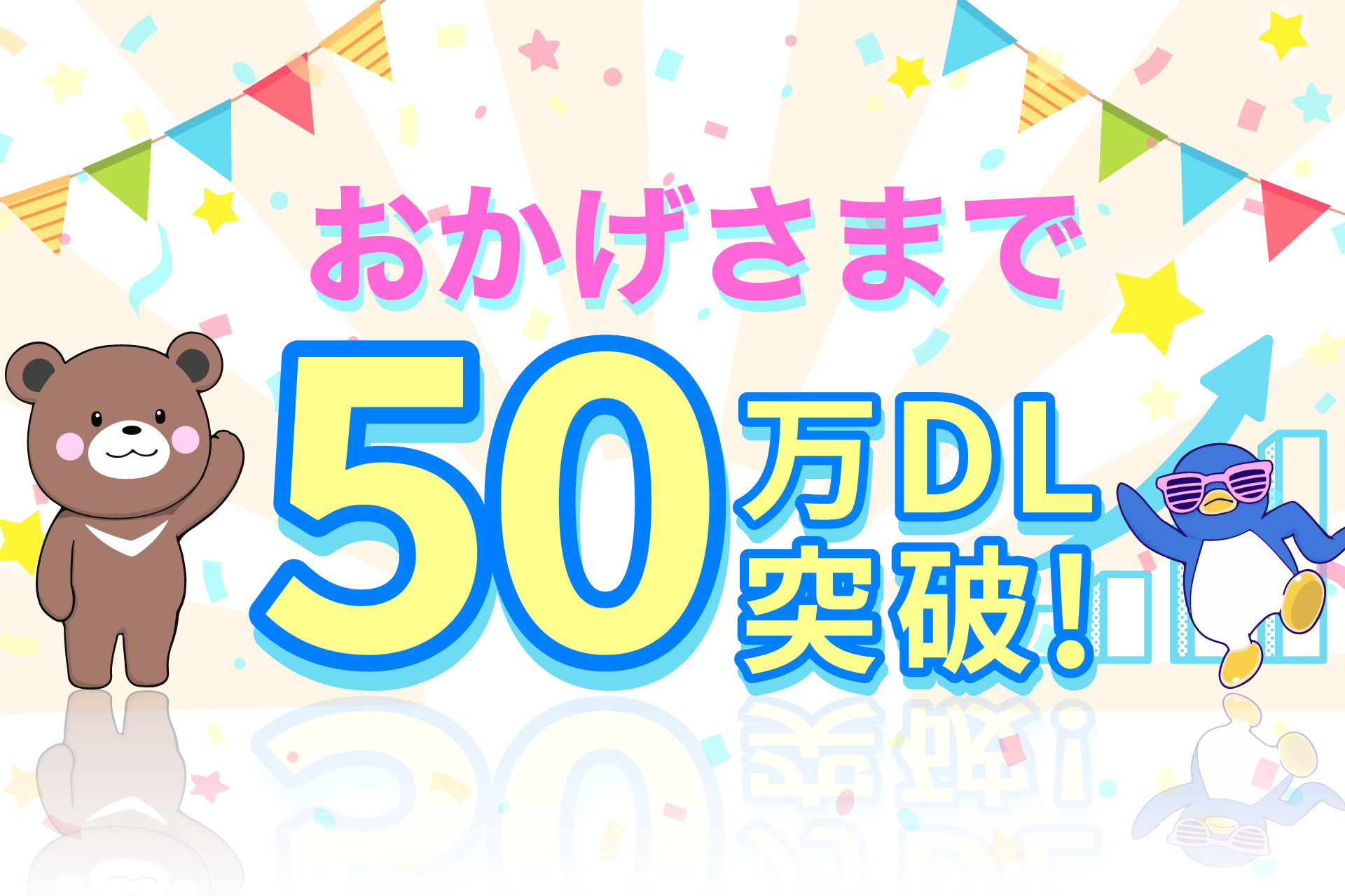 50万ダウンロード突破を記念して、50万ダウンロード記念アプリアイコンへの変更や公式配信を実施いたします。公式配信では50万ダウンロードを記念した抽選会を行います。