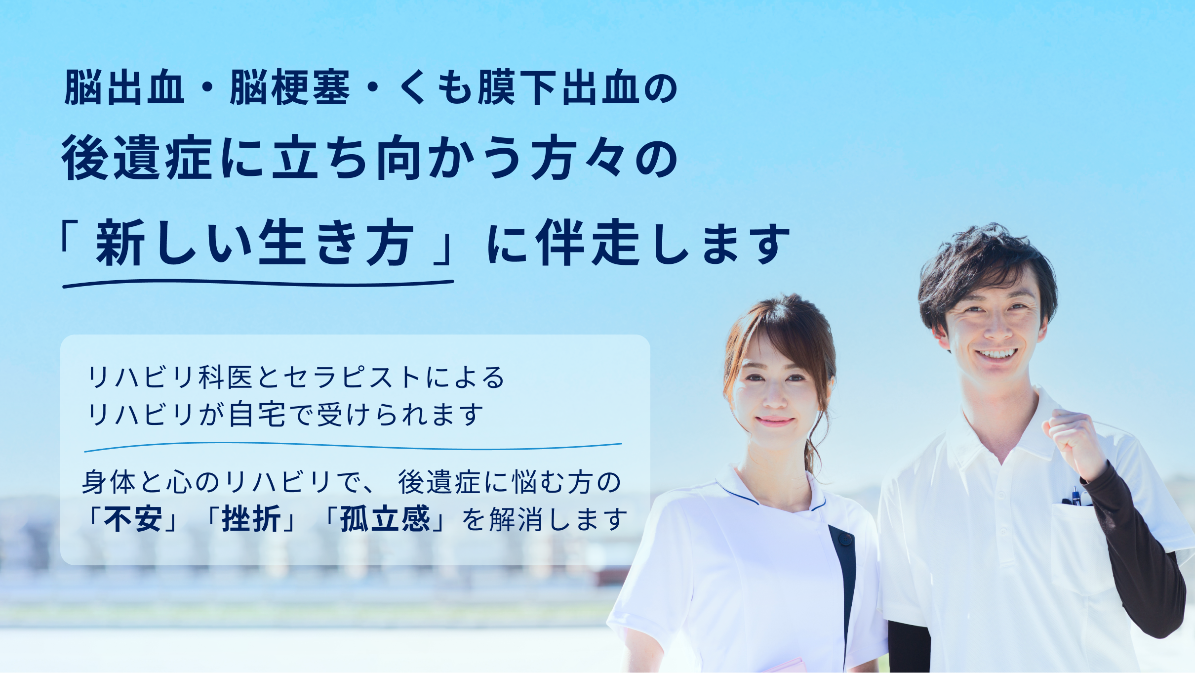 身体と心のリハビリで、脳卒中当事者様の新たな未来への第一歩を共に歩むお手伝いをさせていただきます。
