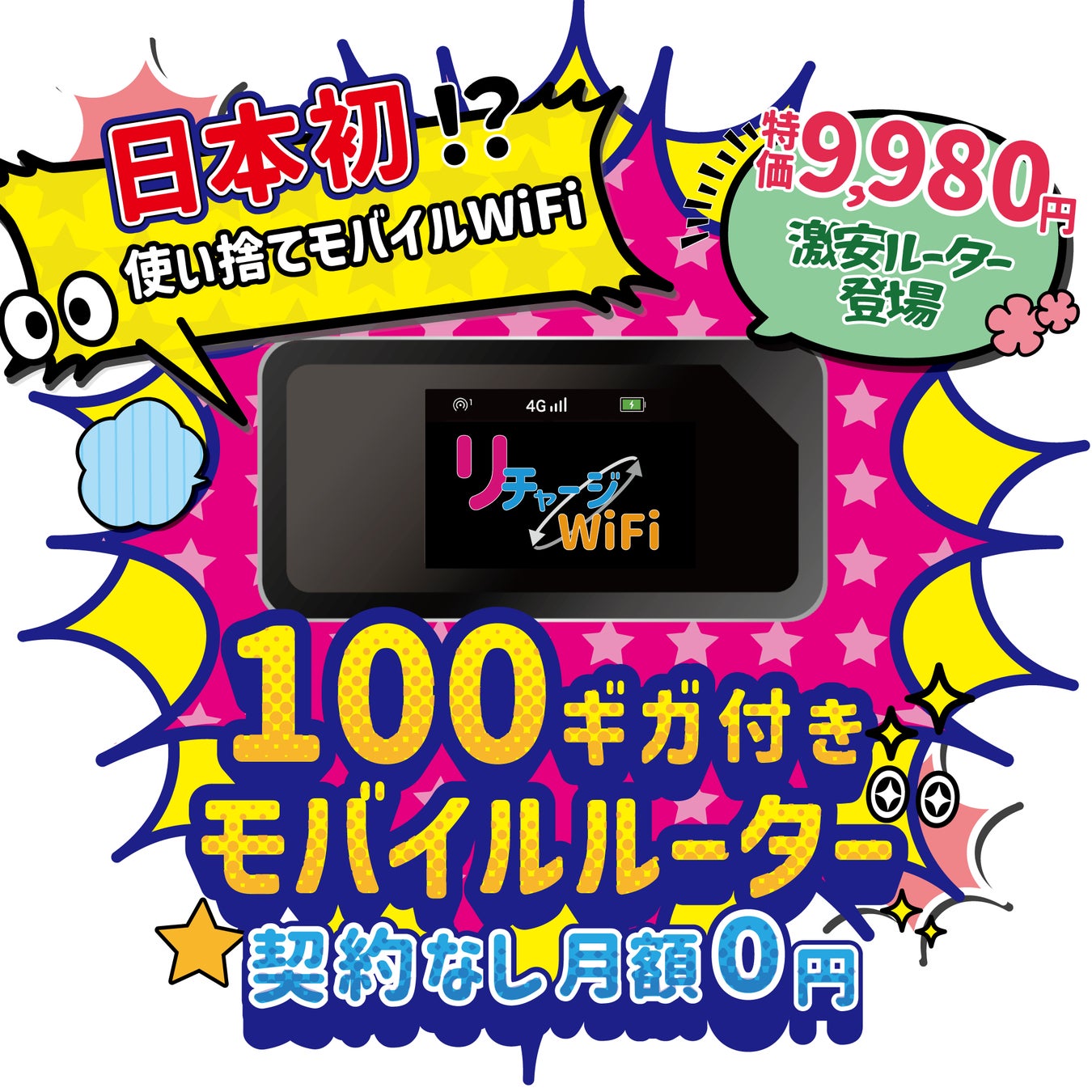 使い捨てモバイルWIFI 日本初!? 100GB付き 激安ルーター9,980円で販売!中古品活用で実現!【リチャージWiFi】