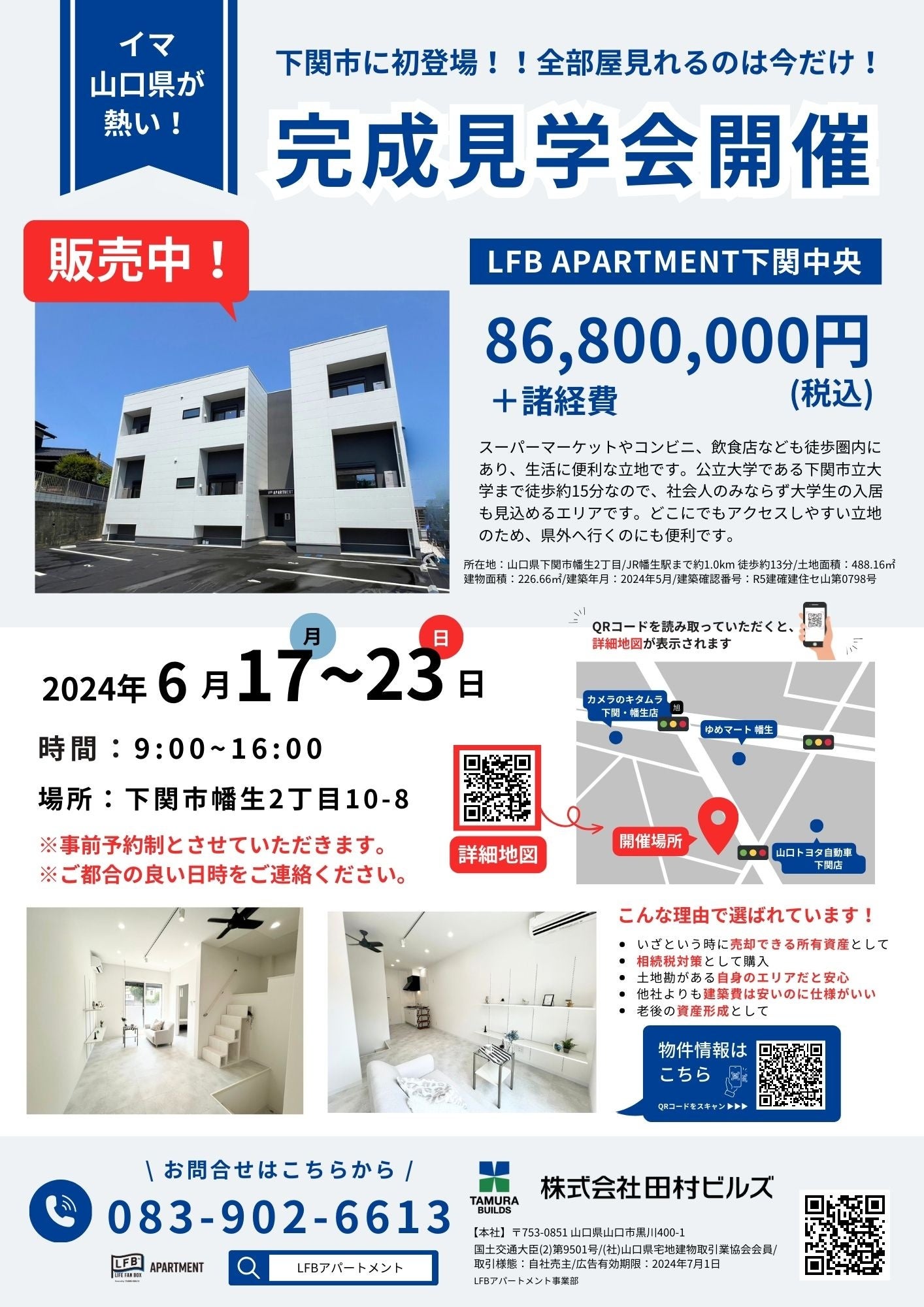 山口県29棟目!下関市初登場・新築アパート見学会開催