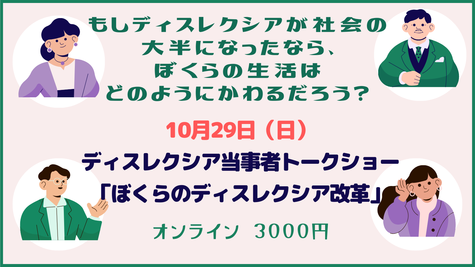 ディスレクシア当事者・学生・大人向け オンライン 参加費:一般 3,000円 / 学生・当事者 1,000円