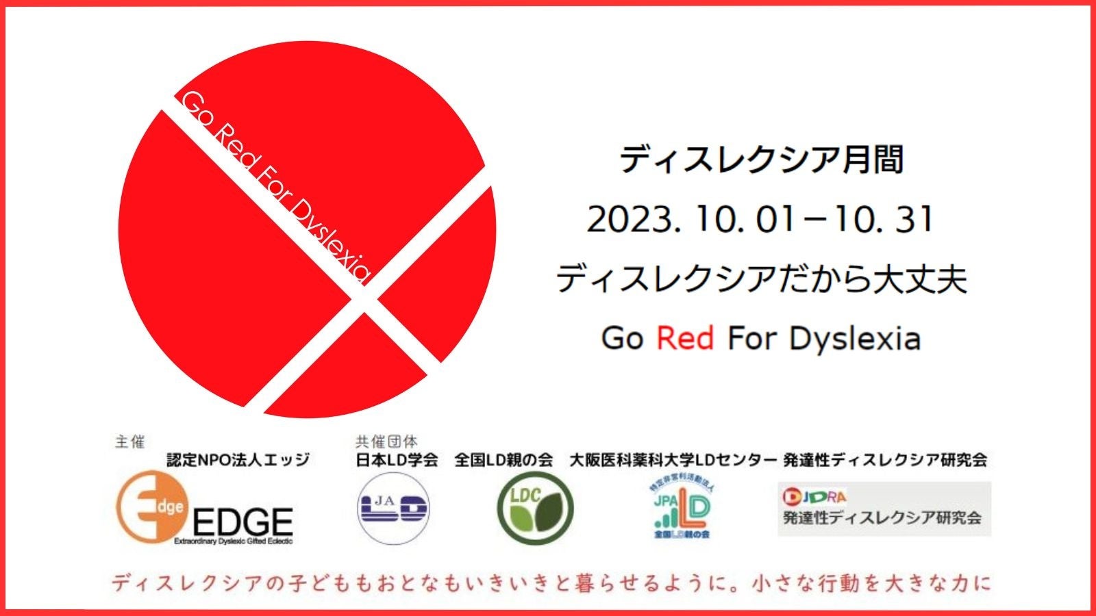 毎年10月はディスレクシア月間!NPO法人エッジは今年から初めて開催されるディスレクシア月間に合わせて、10月に10の啓発イベントを開催します。