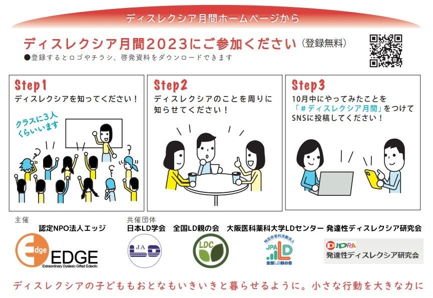 認定NPO法人エッジでは「ディスレクシア月間2023」に伴い、10月に10のイベントを実施します。