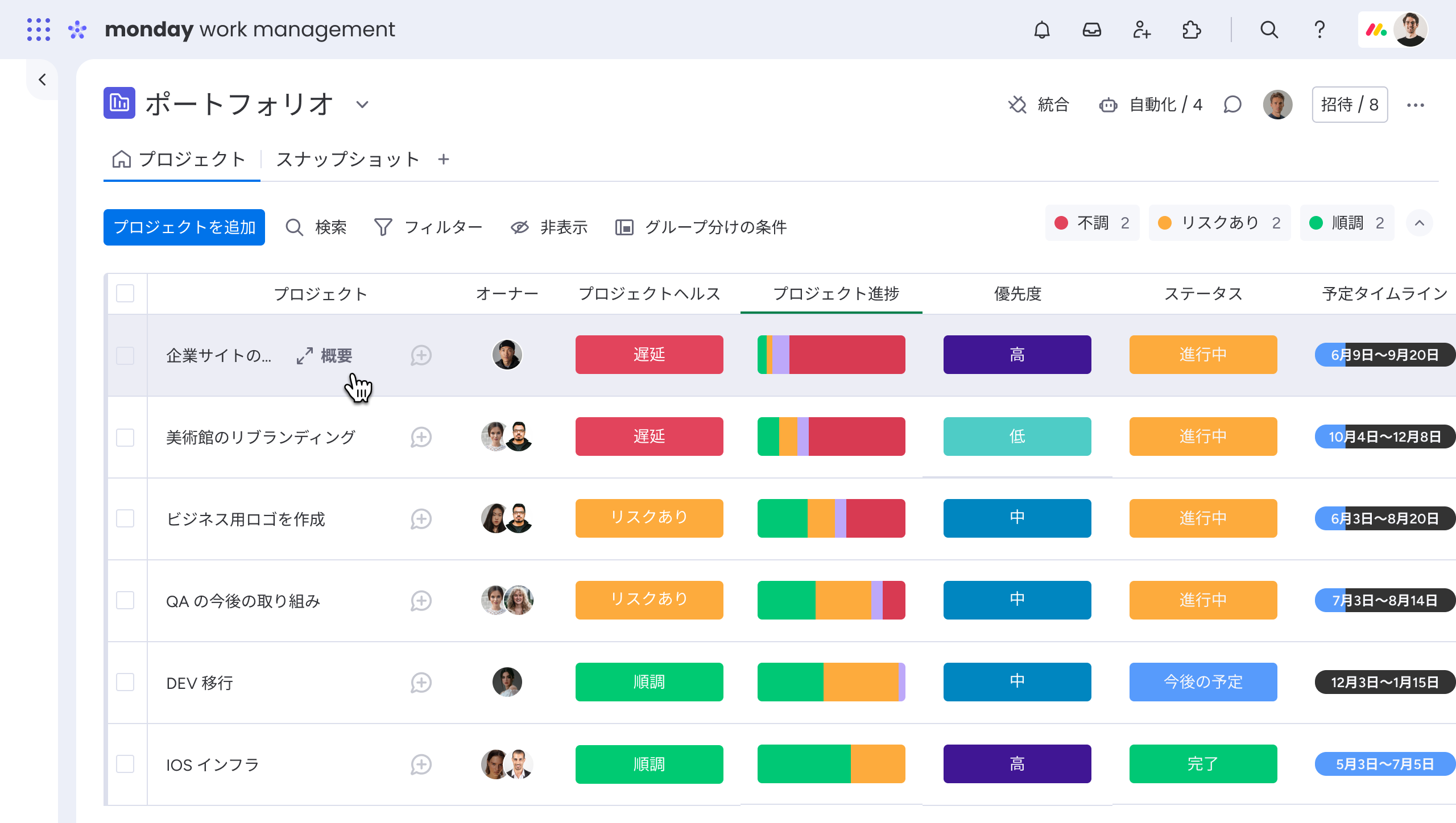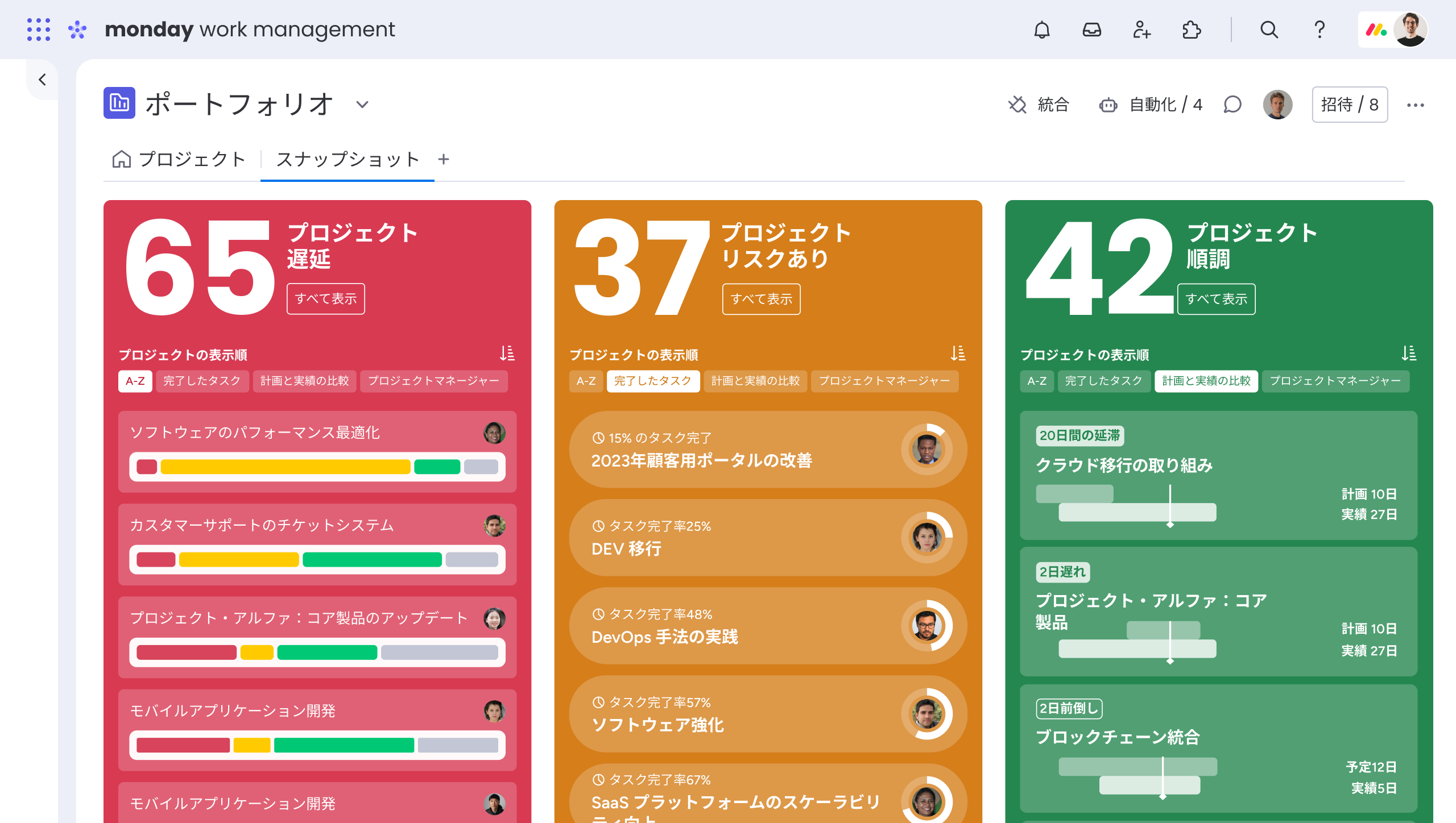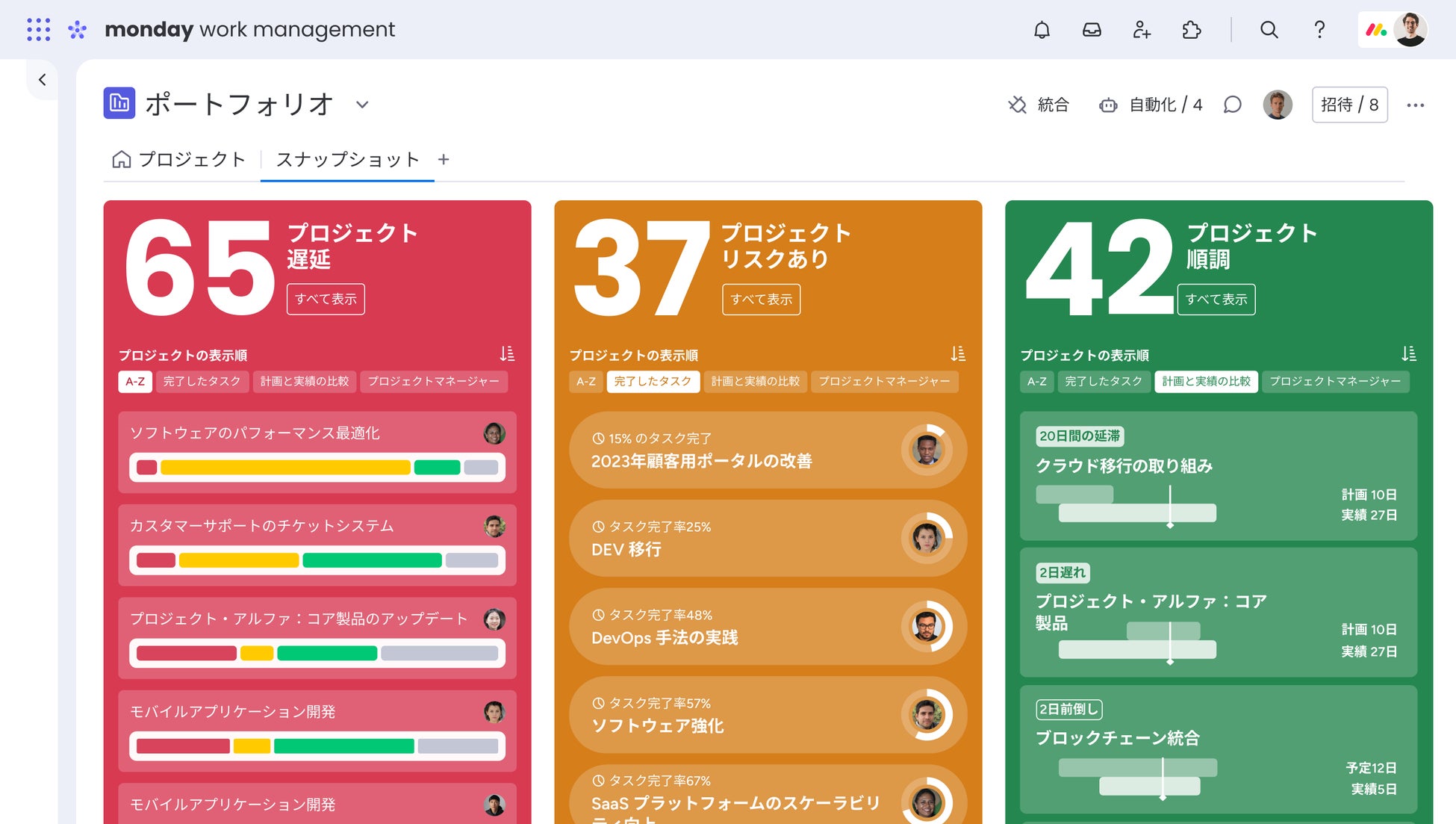 monday.com の ポートフォリオ管理ソリューションは管理職のワークフローを再定義し、主なメリットは以下のとおりです。