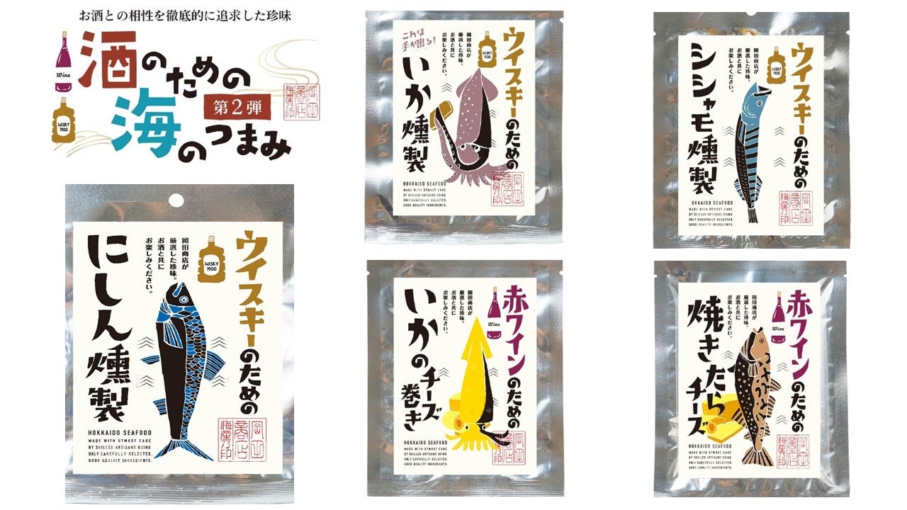北海道札幌市で「⾷を通じ全世界に貢献する」をスローガンに掲げる、株式会社丸市岡⽥商店(本社:北海道札幌市、代表:岡⽥ 隆志)は、2023年10月1日(日)より、さまざまなお酒にあうように考案した【酒のための海のつまみシリーズ】の【第2弾5種】を順次発売開始いたします。