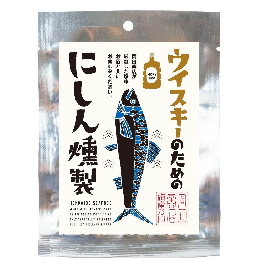 「にしん燻製」は、脂がおいしいにしんを燻製にし、一口サイズにカットしました。「にしん」特有の旨味のある脂と燻製の香りをウイスキーとともにお楽しみください。