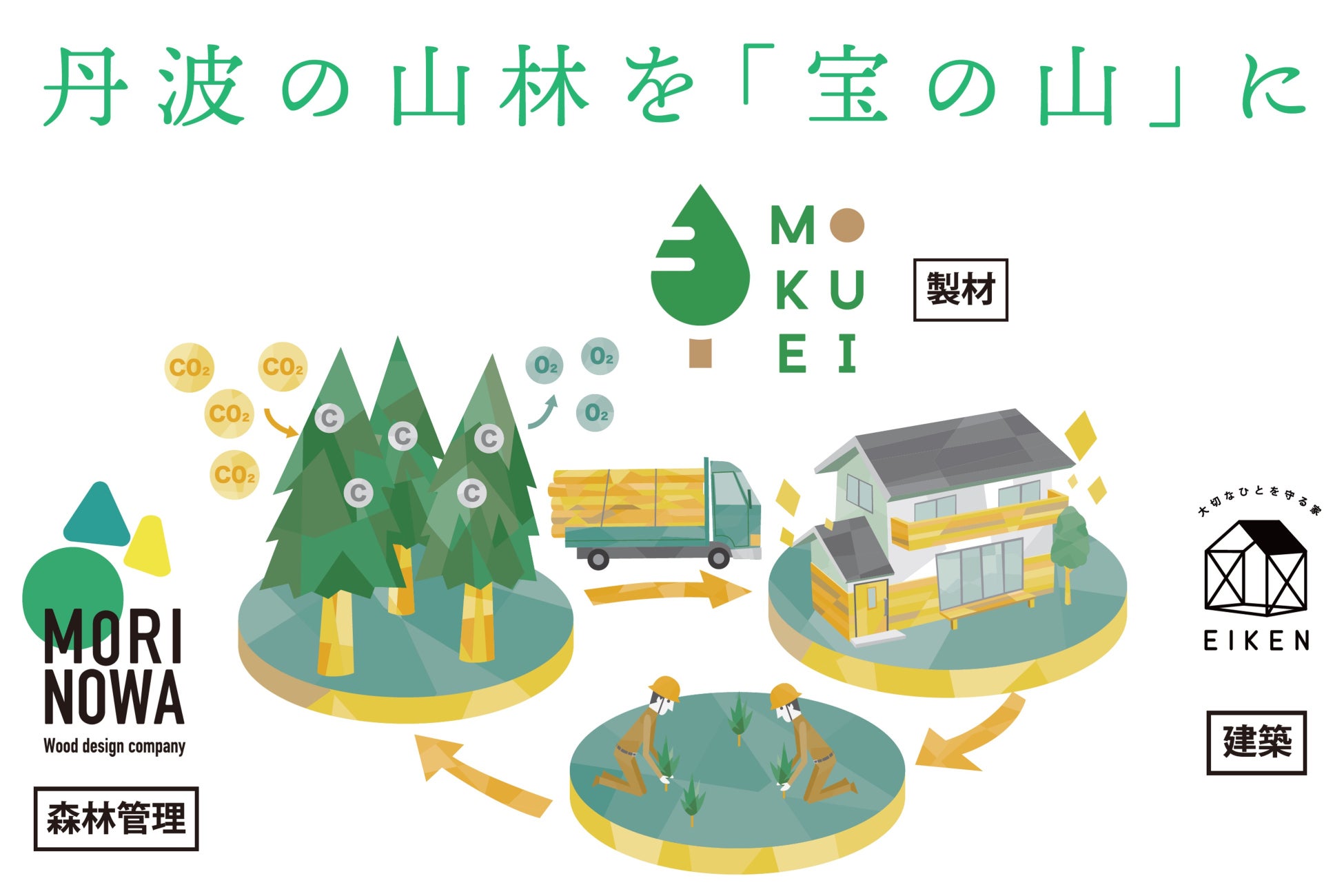 元々、森林管理に取り組む「森のわ」、製材等の木工事を行う「木栄」、建築会社である「栄建」の3社で事業連携をし、丹波の山林の6次産業化を行っていました。