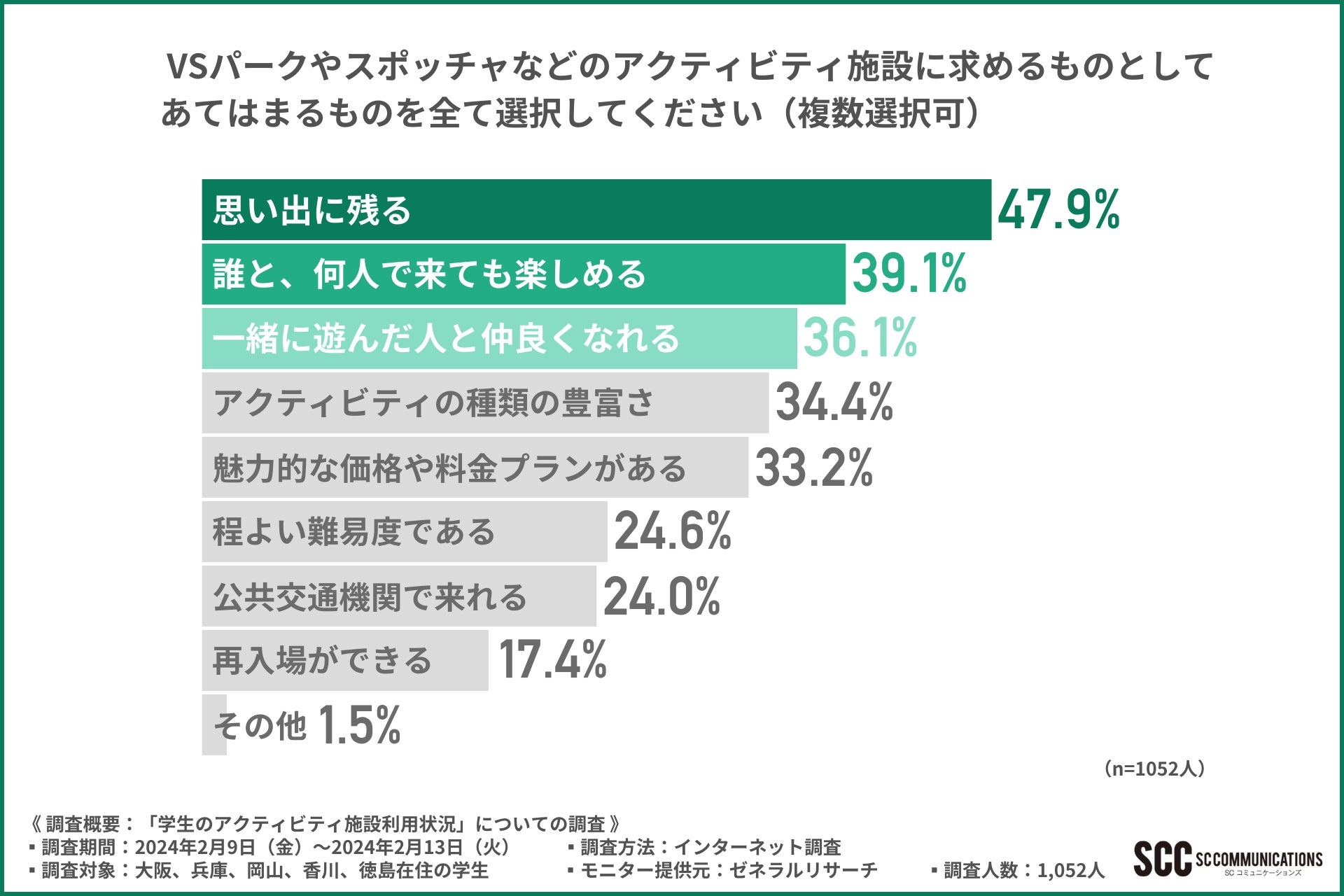 まとめ:学生がアクティビティ施設に求めるのは思い出に残り、誰と何人で来ても楽しめ、仲良くなれるような体験