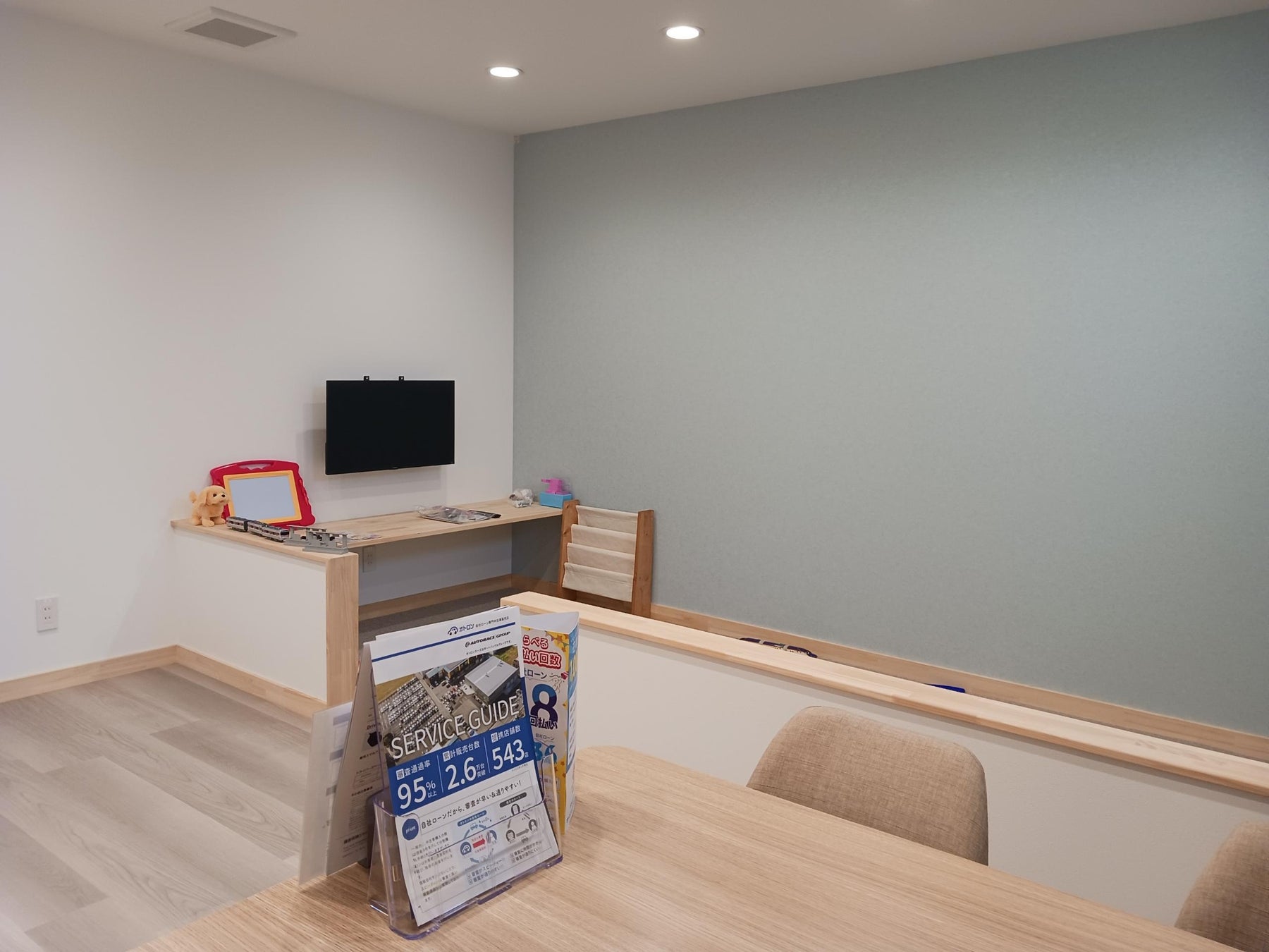 ショールーム内には、5つの商談スペースに加え、キッズスペースも完備しており、小さなお子様連れのお客様も安心してご商談いただけます。