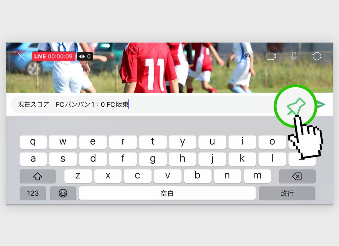 BANDのライブ配信では、配信中にコメントを送ることができますが、そのコメントを予めピン留め設定して送ることができるようになりました。これによって試合のスコアを共有する時やセミナーで告知をする時など、より柔軟に活用できるようになりました。