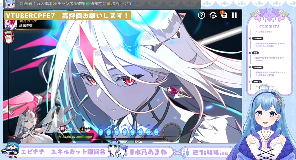 それぞれのチームでは、チャンネル登録者数100万人を誇る新兎わいさんと、登録者数61万人の花宮莉歌さんがリーダーを務め、それぞれが「シェナチーム」、「アレンシアチーム」として配信を通じてエピックセブンの魅力を大いに発信していただきました。