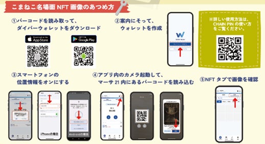 また、こまねこ展では、GPSシステムを連動したQRコードから、展示会の訪問者のみが取得可能な限定NFTカードを発行します。