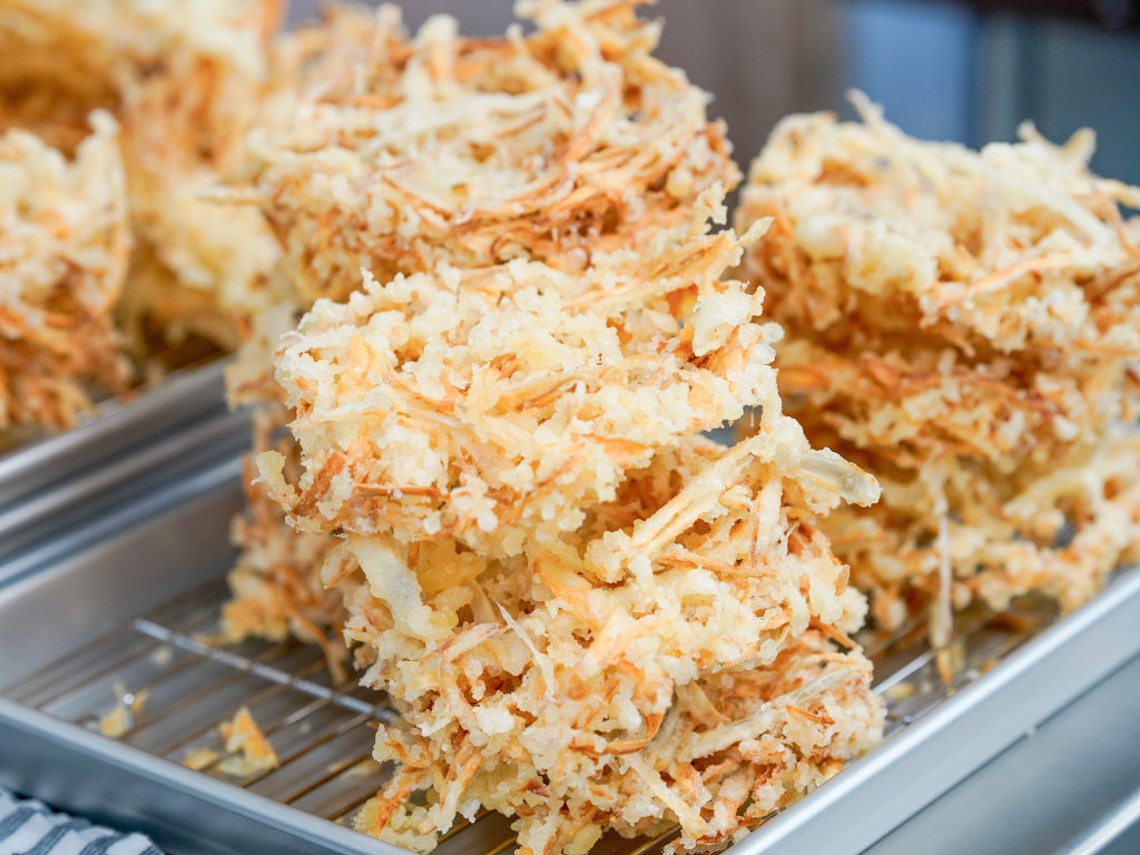 ごぼう天は、独自の手切りにこだわった牛蒡と一枚づつ手揚げすることで、サクサクの食感を生み出しています。わかめをトッピングした「ごぼう天わかめうどん」も人気のメニューです。