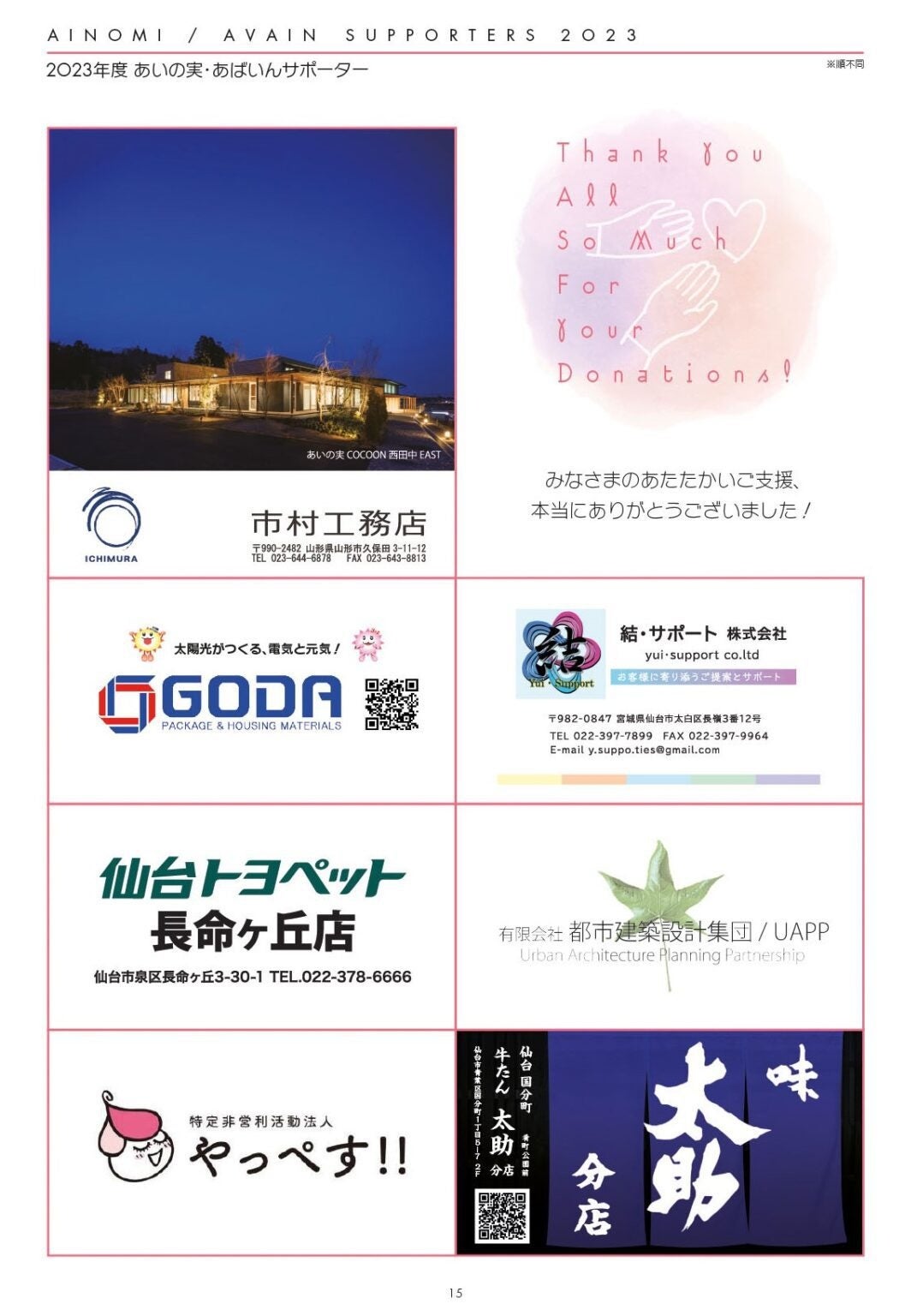 2023年度あいの実・あばいんサポーター企業・法人様たちに、心から感謝いたします。
