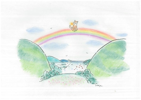 ペットは死後、虹の世界へ旅するという世界的な物語があるが、それをもとにしたストーリーに岩手県一関市在住のイラストレーター戸田さちえさんがカットイラストを挿入した。