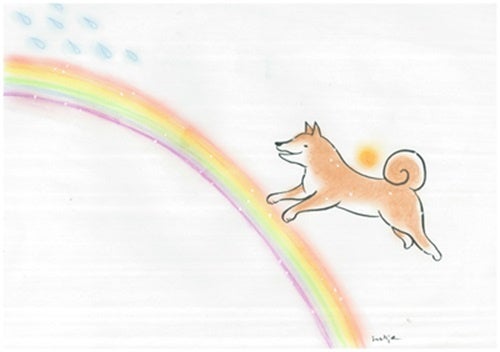 悲しみの涙が希望の光で虹となり、いつか人も動物も再会できるというペットと家族の物語である。
