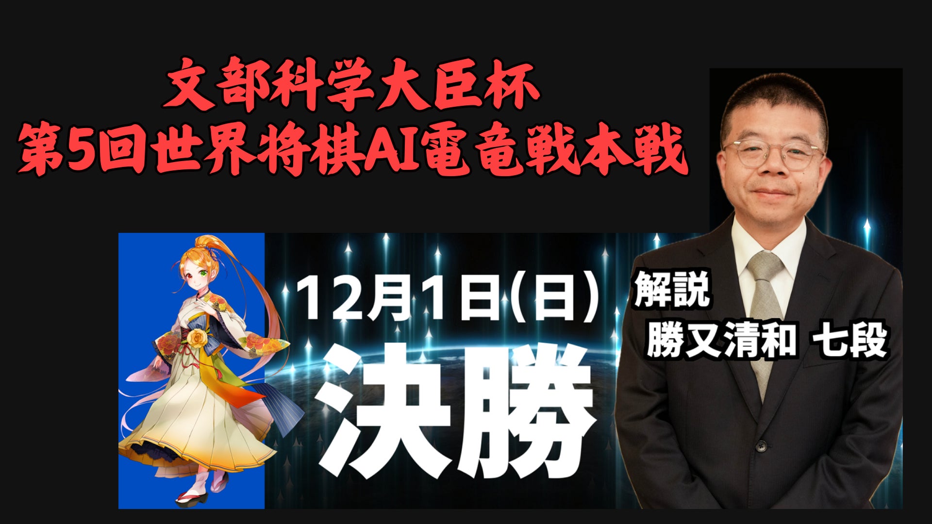 特定非営利活動法人AI電竜戦プロジェクト(理事長:松本 浩志)は、文部科学大臣杯 第5回世界将棋AI電竜戦本戦を2024年11月30日-12月1日に開催いたします。今年で記念すべき5年目となる本大会は優勝者には文部科学大臣賞を表彰するはこびとなりました。