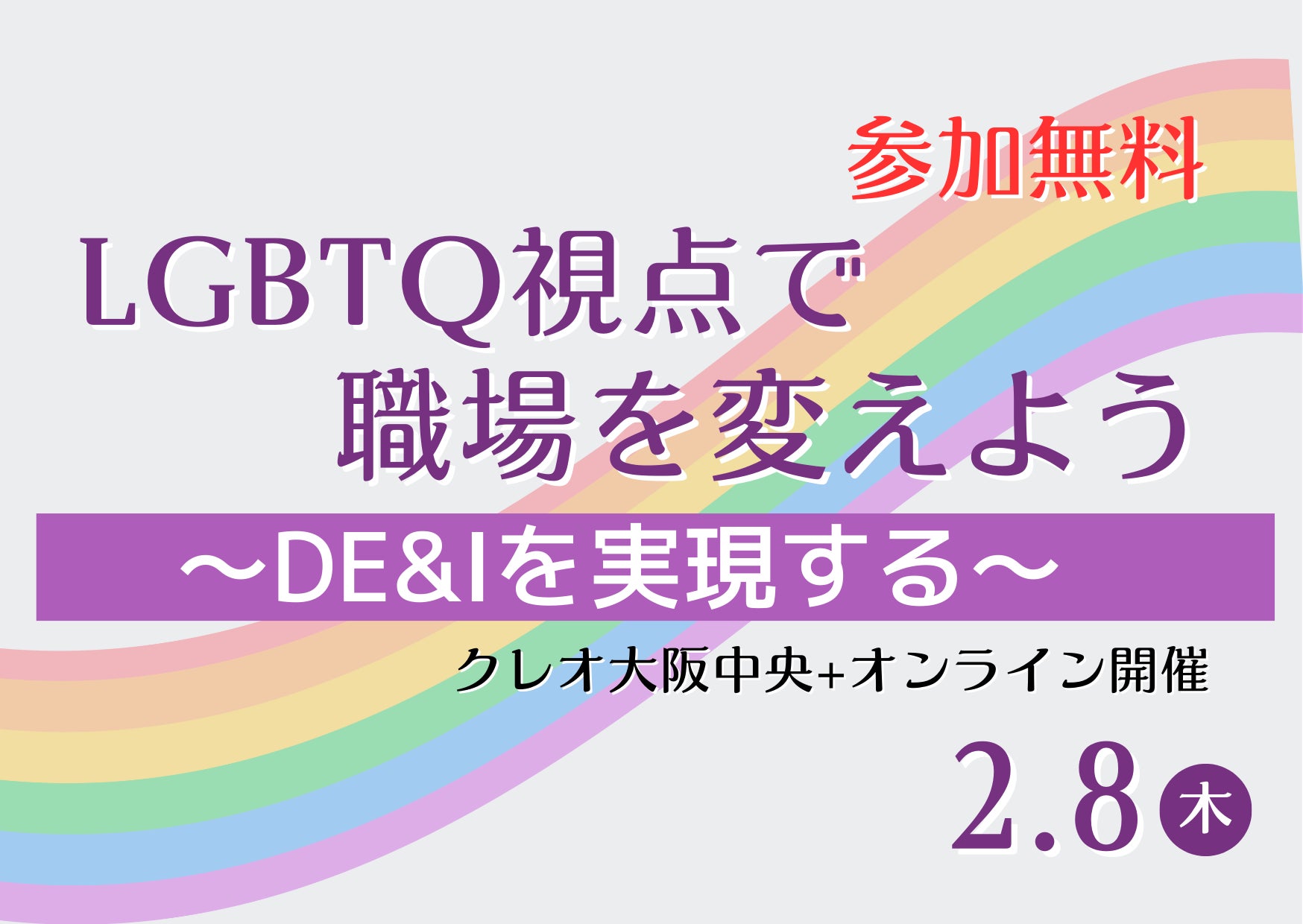 人事・総務担当者向け研修「LGBTQ視点で職場を変えよう~DE&Iを実現する~」【2月8日(木)無料開催】