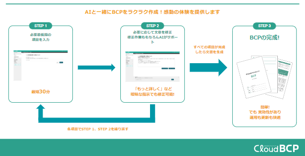 CloudBCPの新機能では、最低限の項目を入力していくだけでAIが文章を生成してくれます!