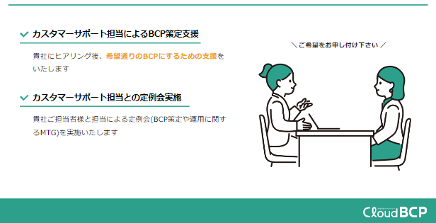 CloudBCPは、BCP(事業継続計画)・BCM(事業継続マネジメント)を簡単にし、机上の空論にとどまらず実際に活用できるBCP活動を行えるよう、経営者をサポートしていきます。