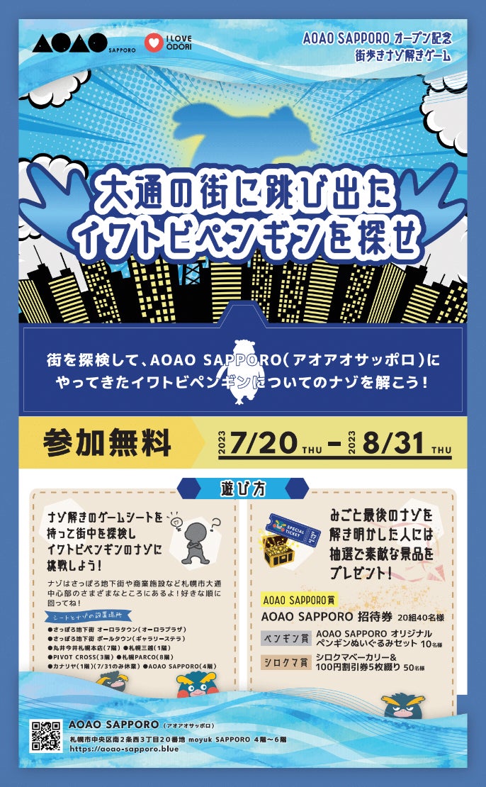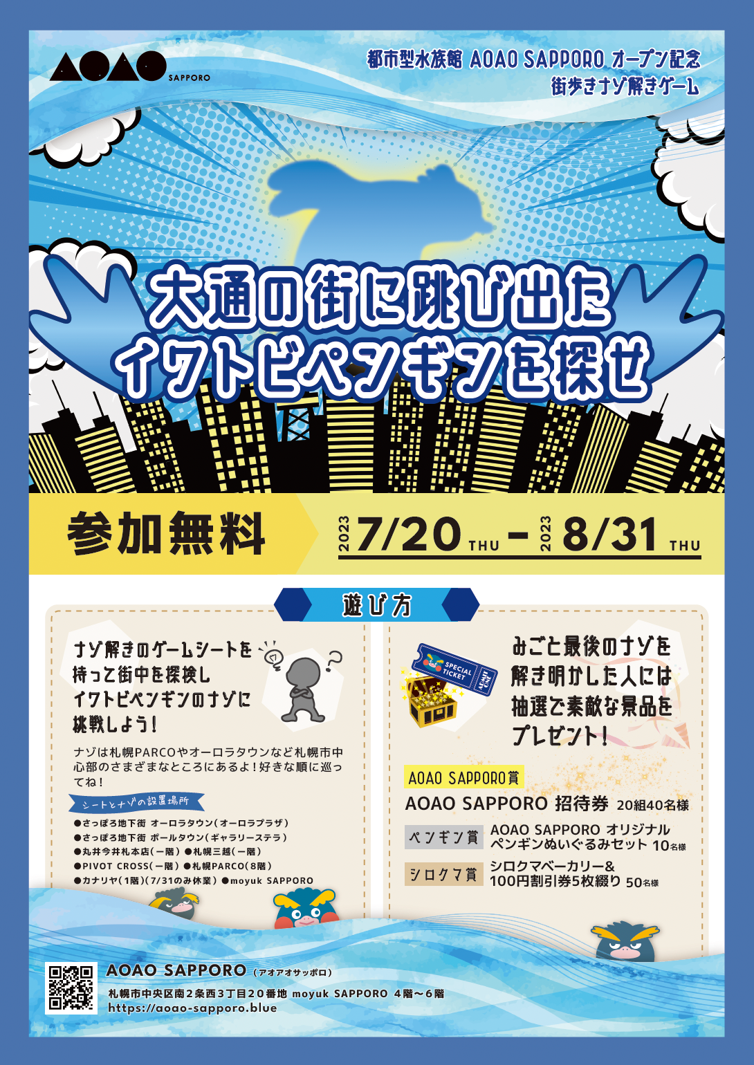 「大通の街に跳び出たイワトビペンギンを探せ」と題し、札幌市内の商店街や商業施設とコラボレーションしたナゾ解きゲームを実施します。