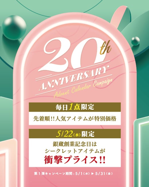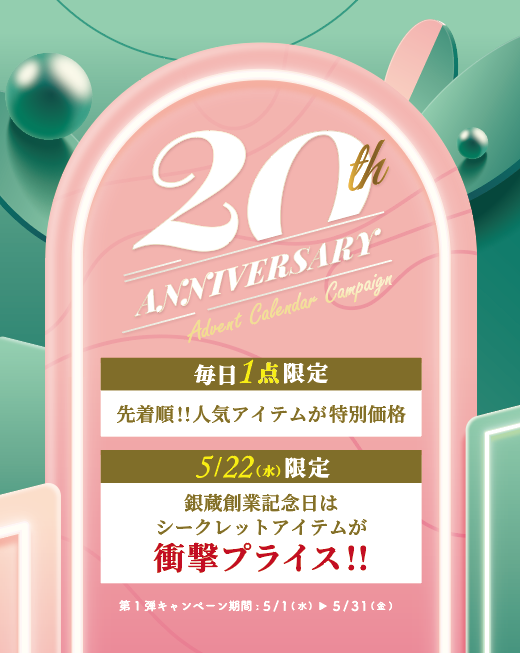 銀蔵が創業20周年を記念して アドベントカレンダーセールほか豪華アニバーサリーイベントを開催中