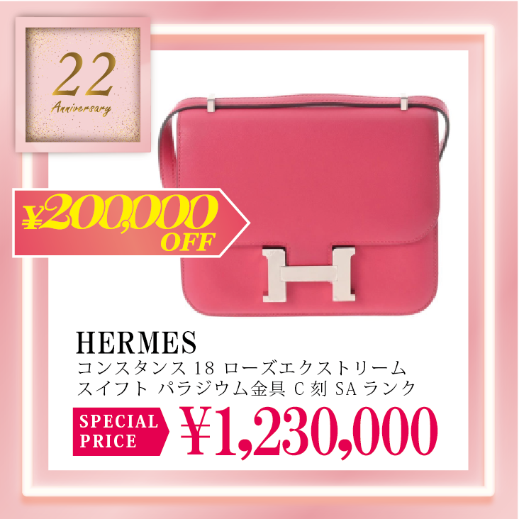 20年の年月を支えて頂いたお客様への感謝を込めて、エルメスやルイ・ヴィトンなど大人気高級ブランドバッグ各種を大特価で販売いたします
