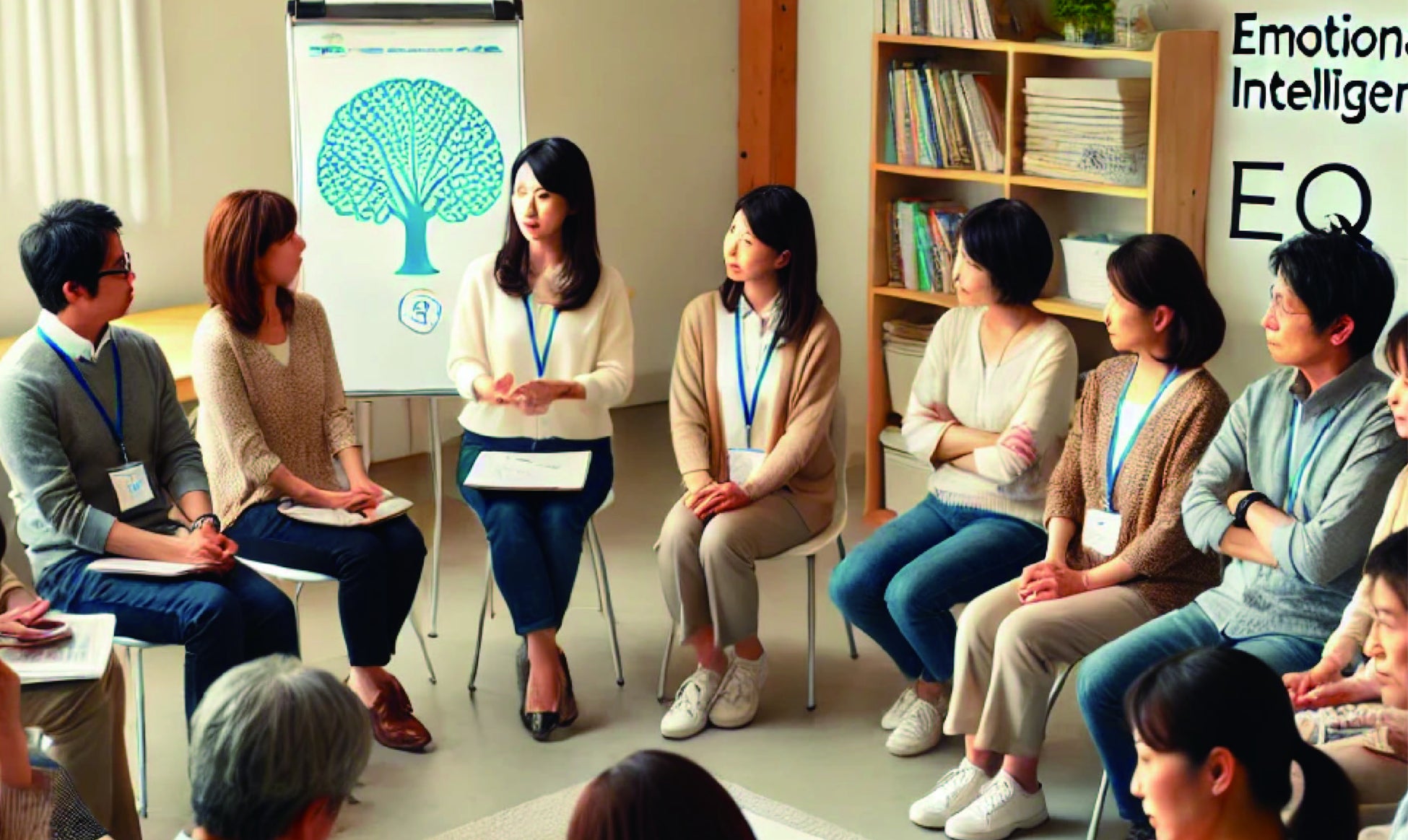 子どもたちを見守りながら、大人は「EQ子育て研修」に参加。国際的なEQ教育機関「6seconds」が開発したメソッドを元に、自身の感情理解や子どもとの関係性構築について深く学びます。