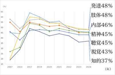 毎年の調査結果につきましては当センター機関誌『情報誌・障害をもつ人々の現在』(ISSN 1883-1532)にて公表しています。今回の分析は127号(2025年3月30日発行)に掲載しております。