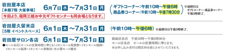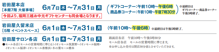 ■岩田屋 :6月1日(木)午前10時~7月29日(土)午前10時まで