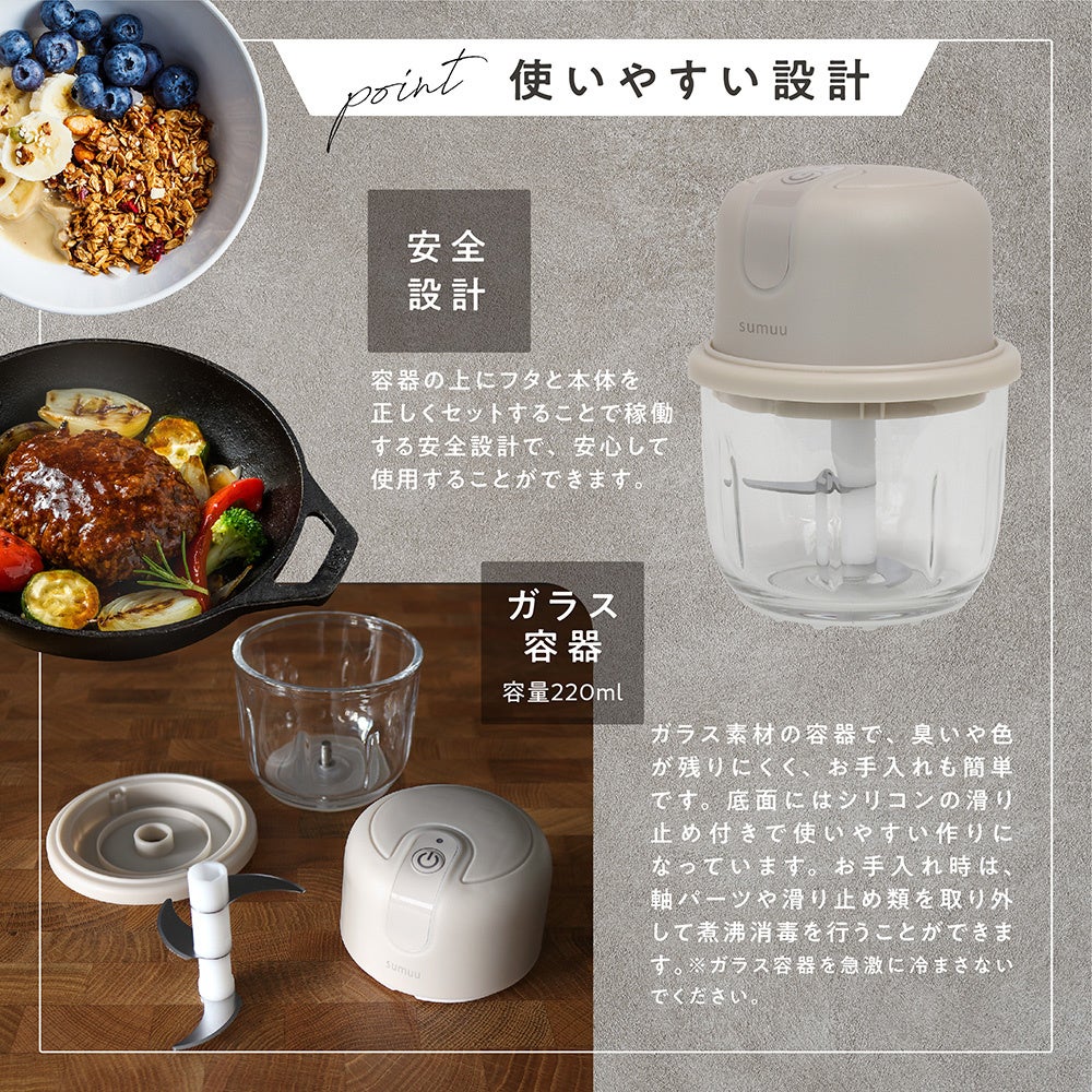 【新商品】ライフスタイルブランドsumuuより、充電式フードプロセッサー「ザ・ミニル」を発売