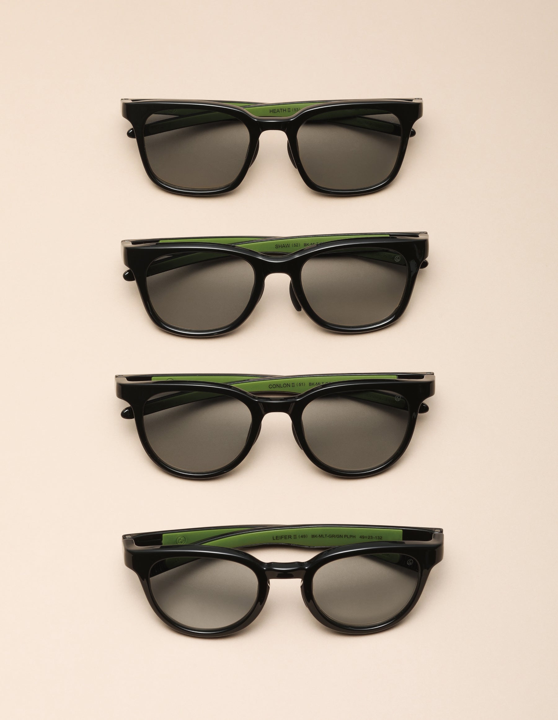 フレームデザインは、Eyevolで人気の「HEATH 3(53)」「SHAW(52)」「CONLON 3(51)」「LEIFER 3(49)」の4モデル。