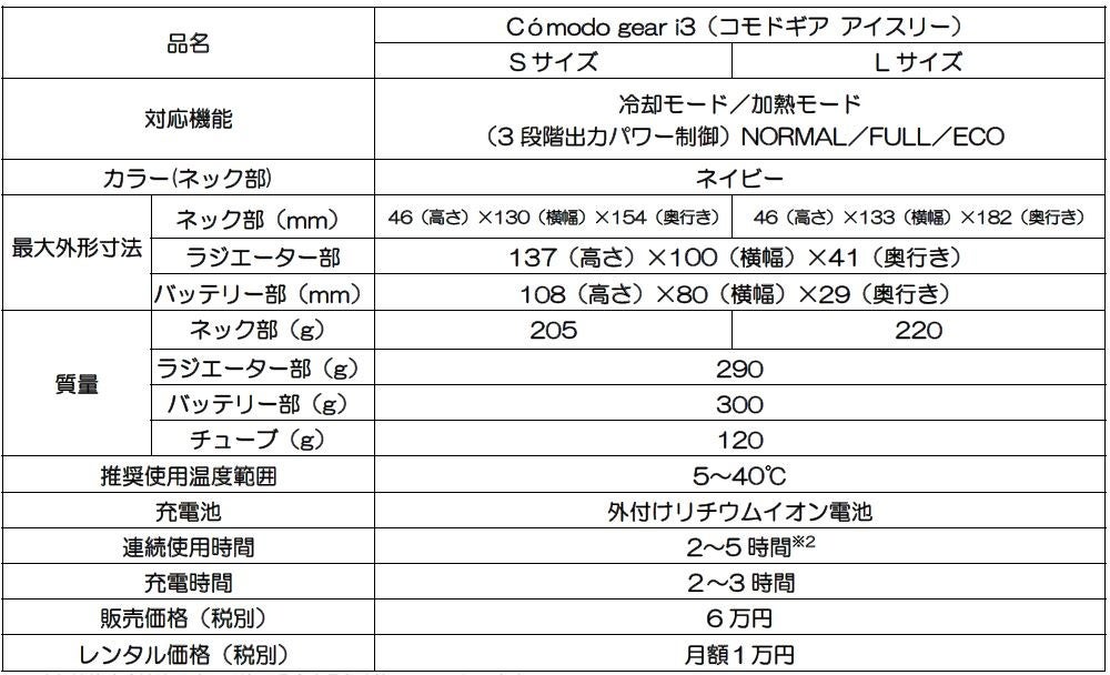 ※2 冷却性能や連続使用時間は使用環境や運動状態により異なります。