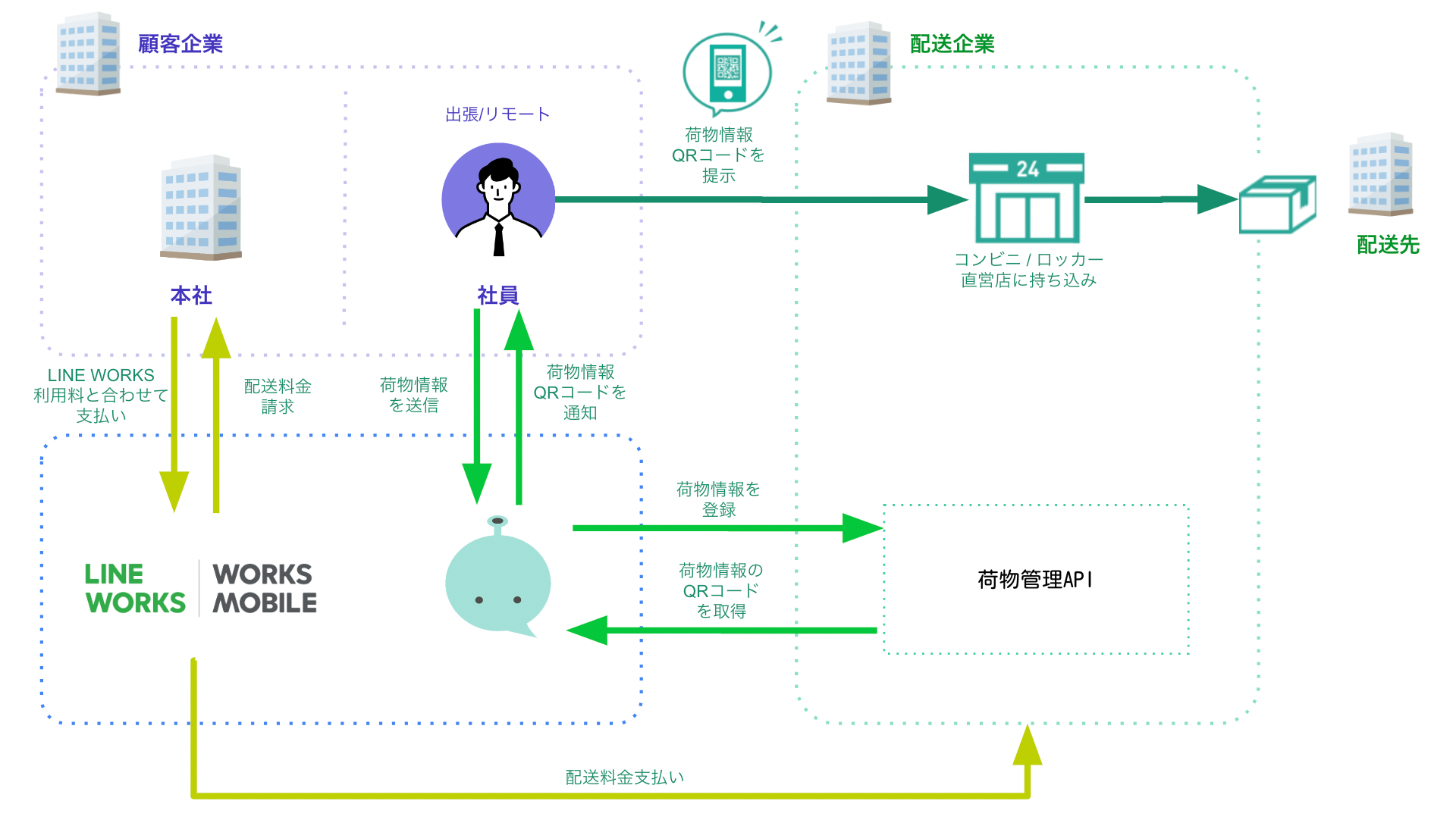 新しい開発は不要で、手書きで送り状を用意せずに、LINE WORKSのトークからかんたんに宅急便の発送手続きができるサービス