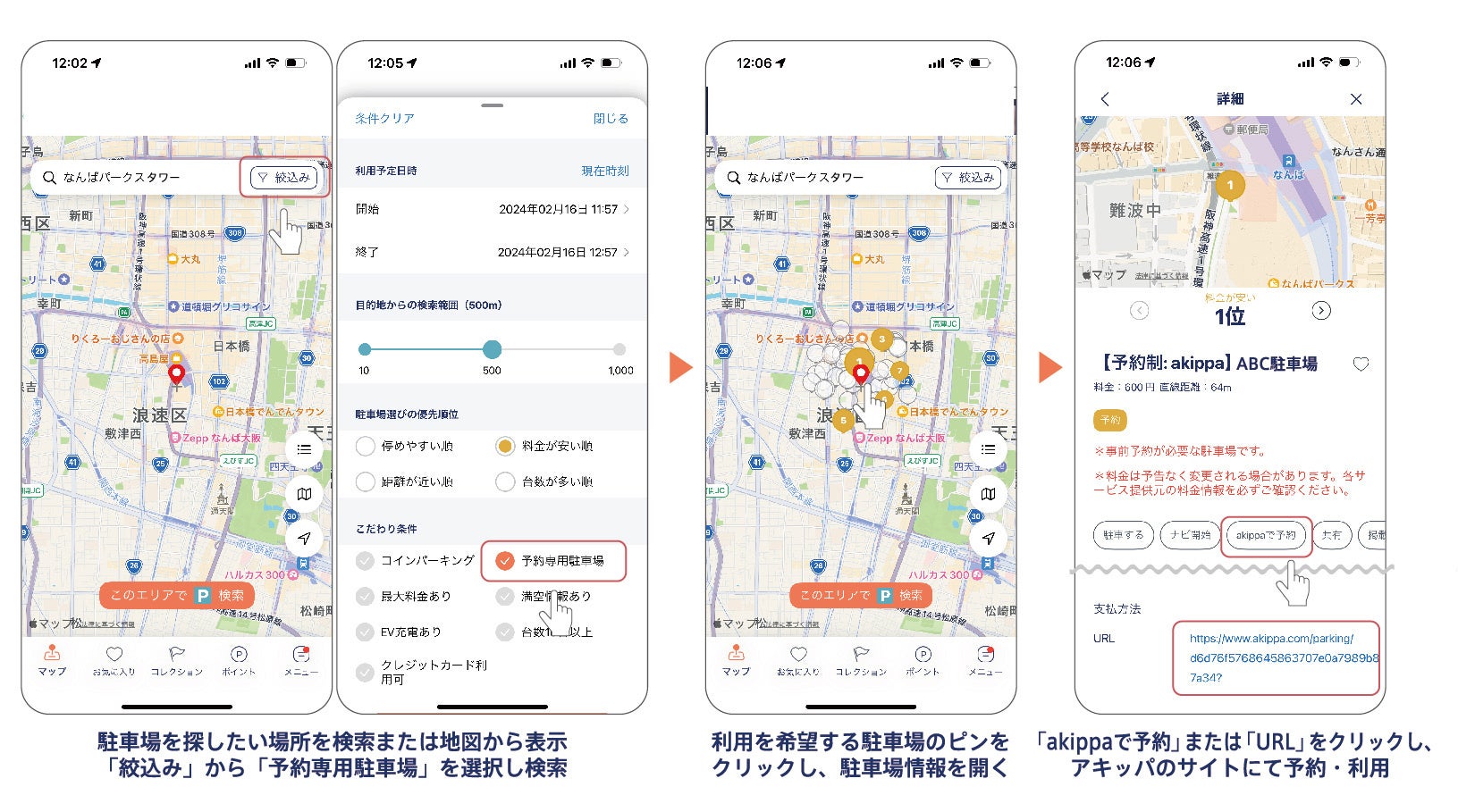 この連携によりドライバーは、P-Collection上からアキッパの駐車場検索および予約(満空)状況の確認が可能となることから、利便性向上につながります。