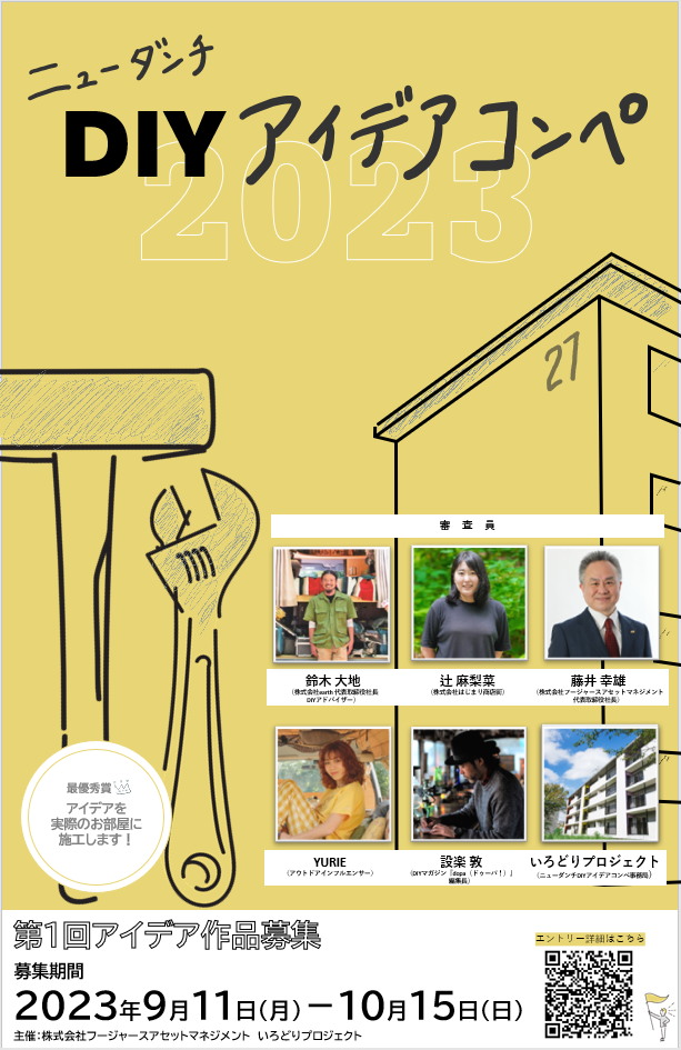 【リノベーション団地「いろどりの杜」】DIYアイデアコンペを開催いたします。 募集期間2023年9月11日(月)~10月15日(日)