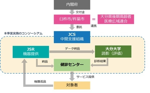 自治体の健康診査で65歳以上のハイリスク群を対象とした、心房細動の潜在患者を早期発見する取組は日本初*1です。なお、本事業は内閣府の成果連動型民間委託契約方式推進交付金に採択されました。